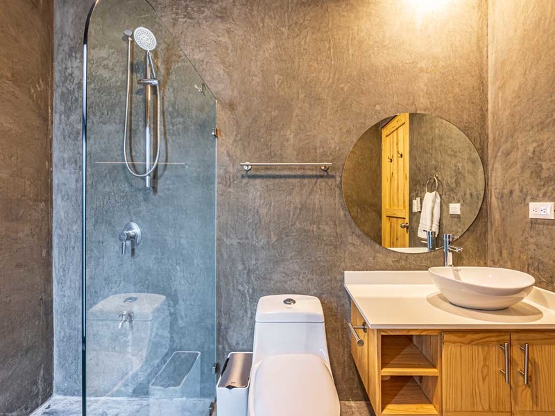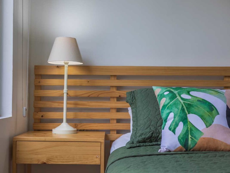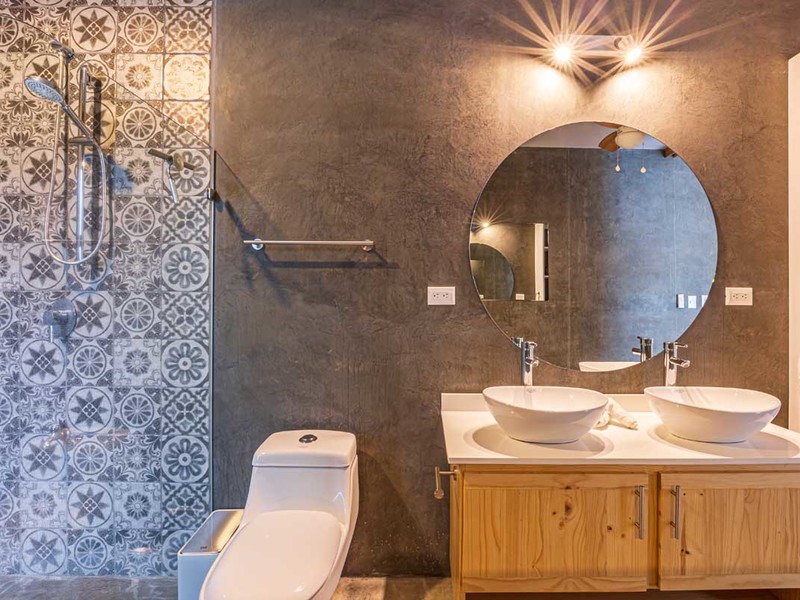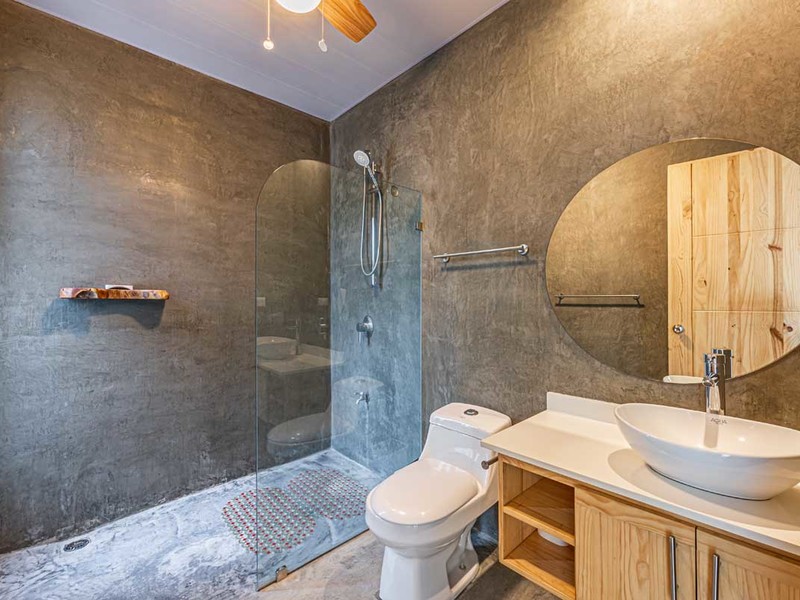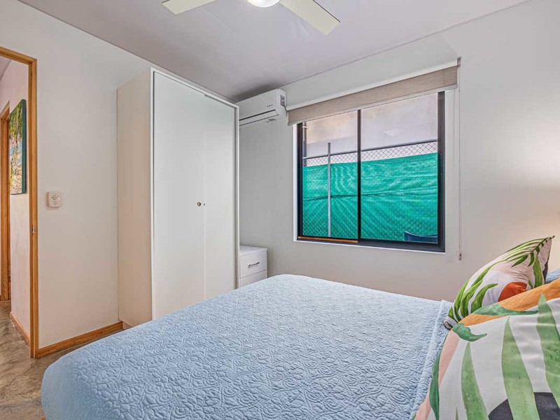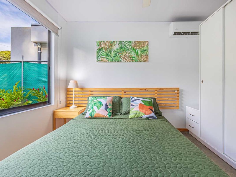 Two spacious bedrooms share an appointed bathroom while the master bedroom boasts a sized en suite bathroom adorned with beautiful polished concrete details.