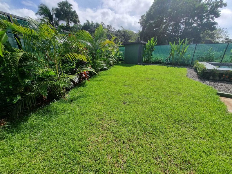 A terrace featuring a pool area provides an ideal setting for entertainment or quality family time, complete with a custom built-in grill. The land size is 527 m2 and is enclosed with a fence all around, accompanied by 2 pedestrian gates. This ensures that your pool maintenance and gardening teams can access the area without causing any disturbances or compromising your privacy.