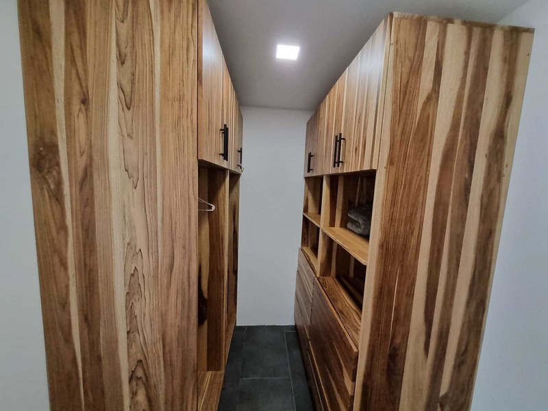 This 250 m2 home is offered as a turn-key solution, complete with all furniture and appliances, catering to the discerning tastes of North American buyers. The package includes a washer/dryer, dishwasher, on-demand hot water heaters, and AC units throughout the entire home. Upon entering, you'll notice the meticulous attention to detail, including custom-built laurel wood furniture and built-ins. The wide sliding glass doors seamlessly connect the indoors with the outdoors, expanding the living space to its maximum potential.