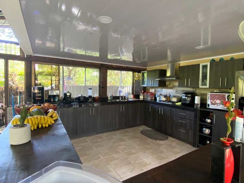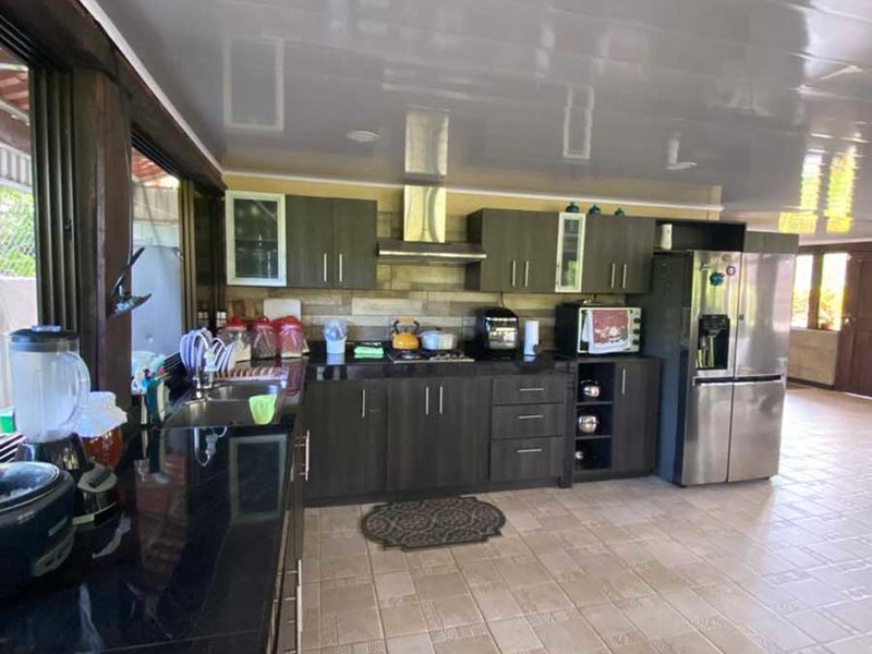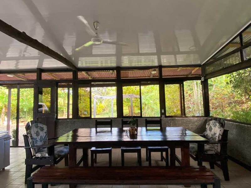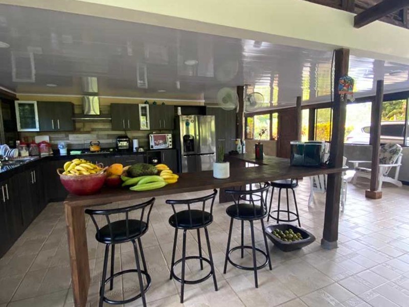 Abundant Garden: The garden is filled with edible plants such as yucca, plantain, and pineapple, as well as fruit trees including mango, lemon, water apple, coconuts, and many more.