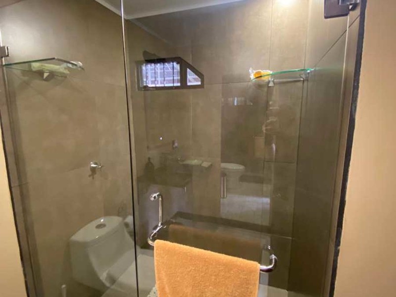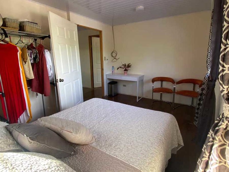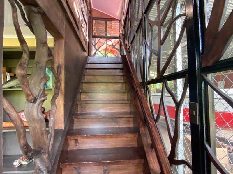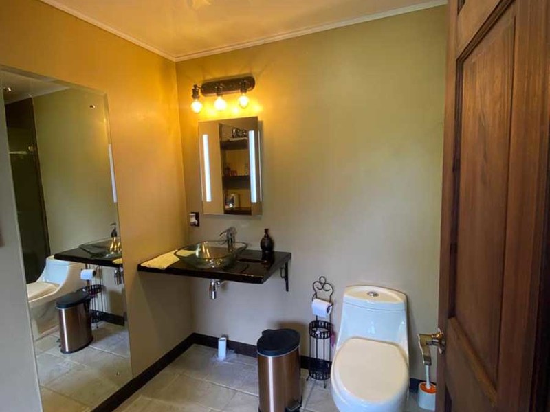 Main Two-Story House: With a spacious kitchen, living room, and dining area, this two-story house features 3 bedrooms and 3 full bathrooms. The concrete and wood details, crafted by the owner, provide a unique and cozy touch.