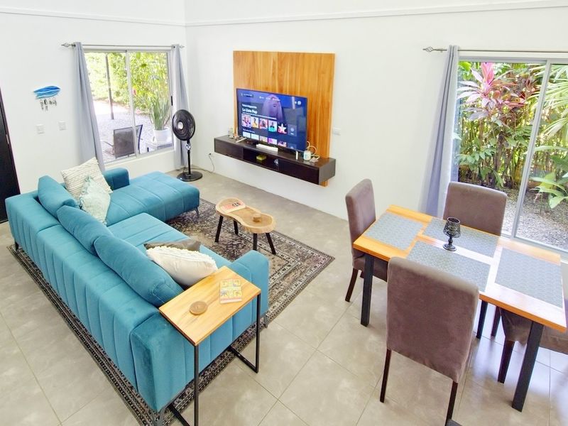 Welcome to this home constructed in 2020 which offers two bedrooms, two bathrooms, and an additional guest house/studio. Situated in the heart of Bahia Ballena, Uvita, this residence enjoys a location, near Marino Ballena National Park. Is just a short walk away from the beach.