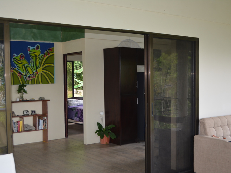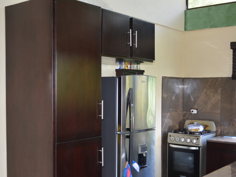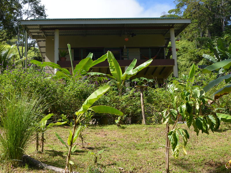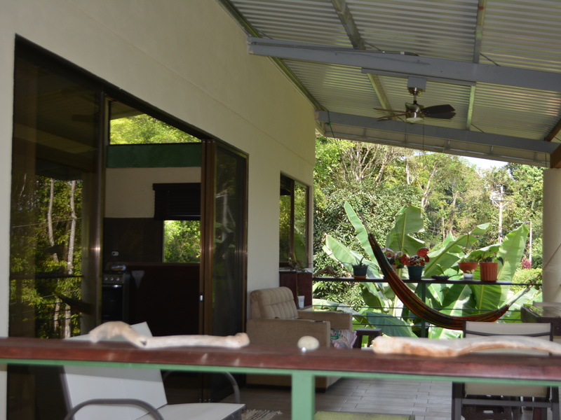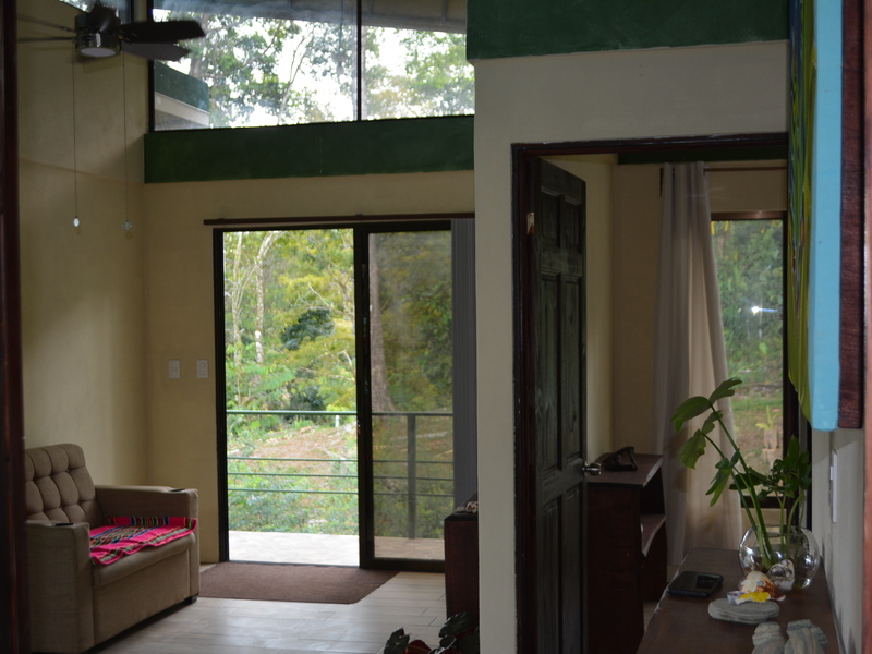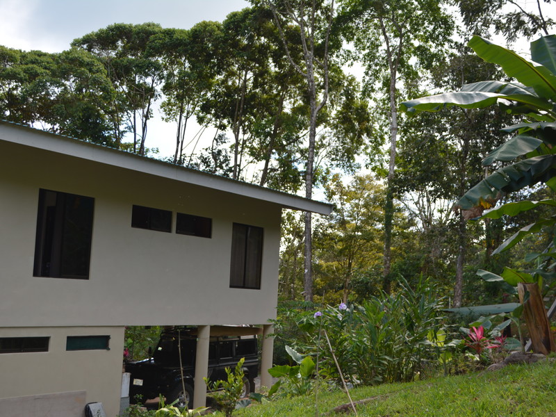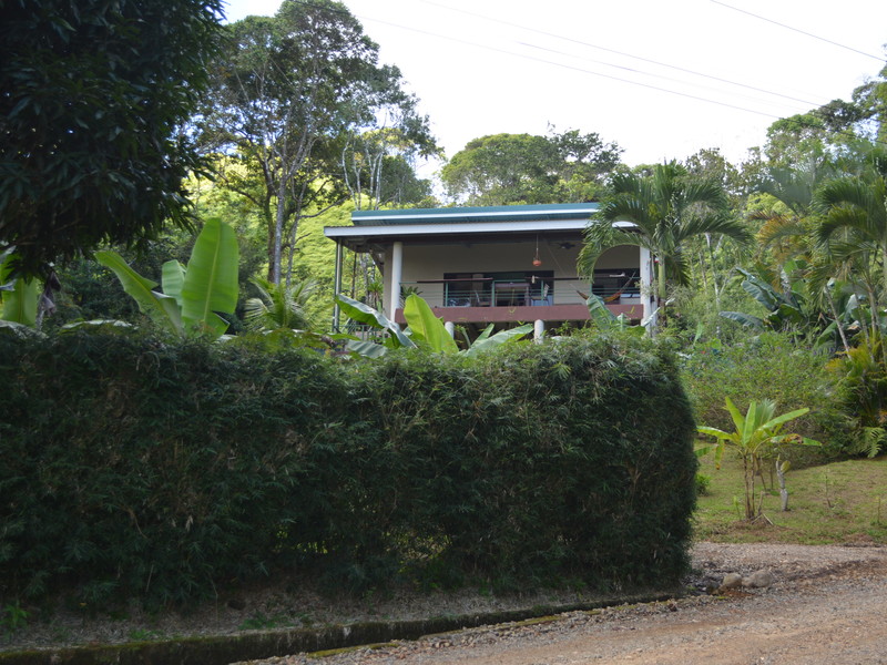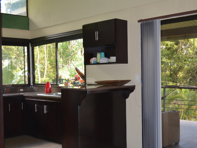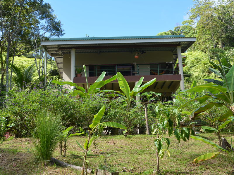Nestled in the refreshing climates of Punta Mira, just outside Dominical, this recently constructed home is a tropical retreat. Situated on the first ridge above the ocean, a brief drive takes you to the beautiful Playa Dominical and the Costa Ballena. The residence features one downstairs bedroom with a half bath and an outdoor shower, along with covered parking for two cars. The second level comprises two bedrooms, two full bathrooms, a kitchen, a living room, and expansive covered deck space.
