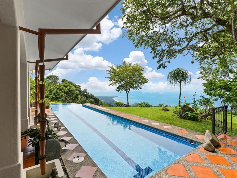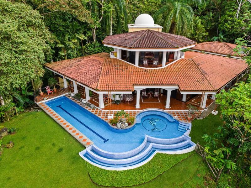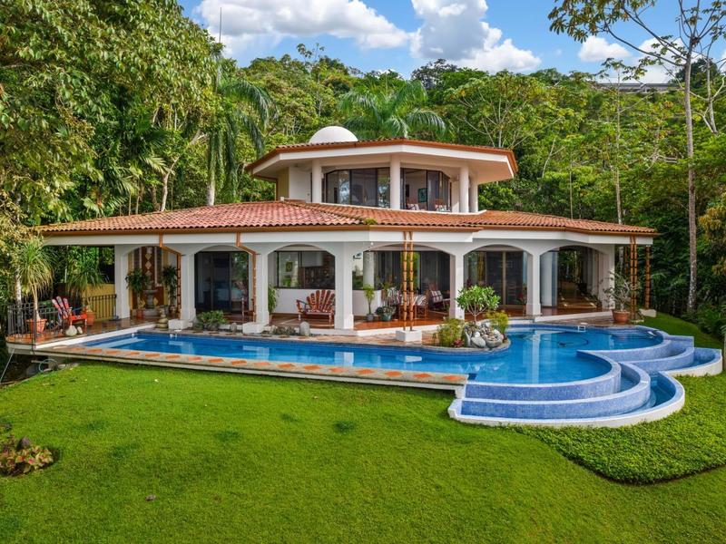 Nestled within the most prestigious and sought-after gated community on the southern Pacific coast lies an extraordinary estate, spanning nearly 8 acres adorned with lush jungle, cascading waterfalls, and a stately Mediterranean Villa. Meticulously selected by the original owners for its panoramic ocean views, expansive land, and unrivaled privacy, this pinnacle property is a testament to luxury living.