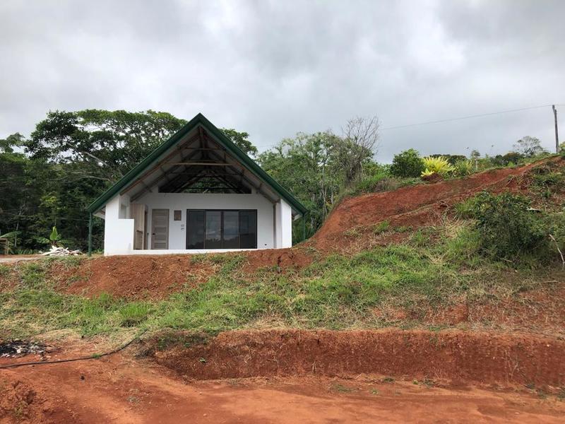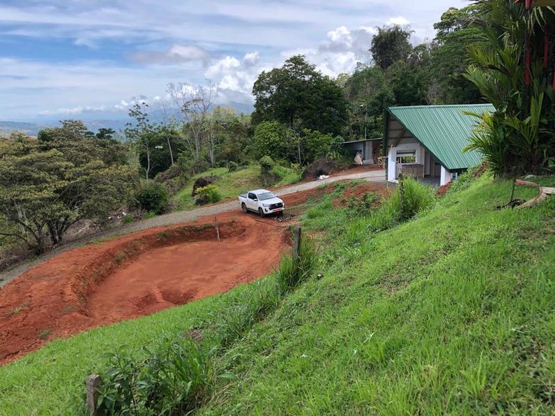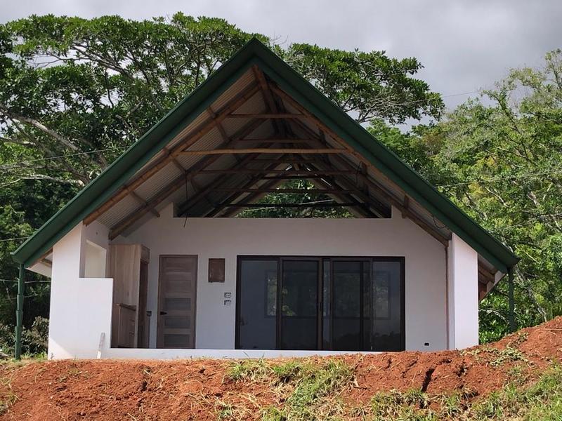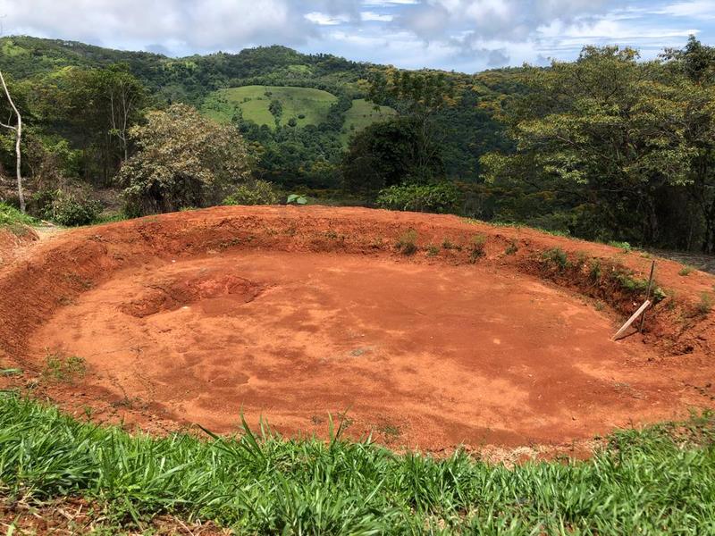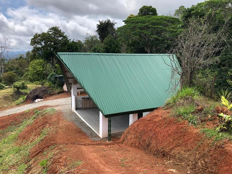 On the property, there is a constructed cabin called a rancho, which features one bedroom and one bathroom. The rancho showcases bamboo accents on its ceiling. Provides a panoramic view overlooking a pond fed by the stream running along your property's border. It offers a living space with a kitchen and bathroom.