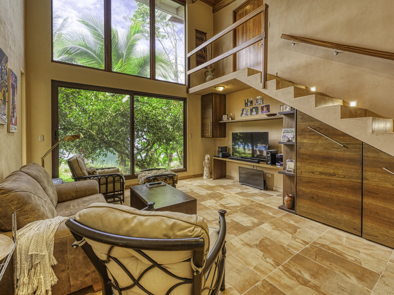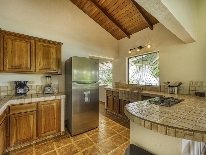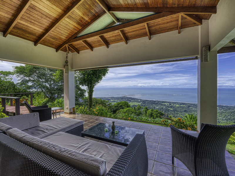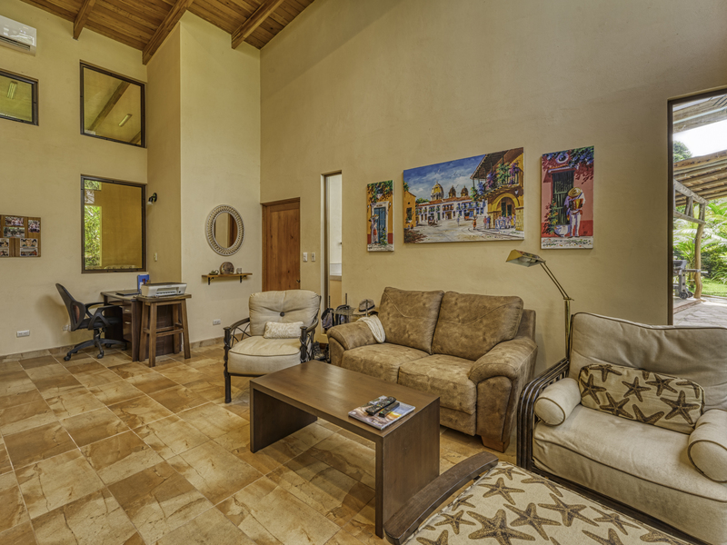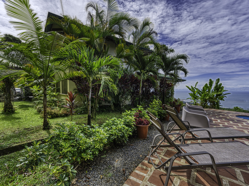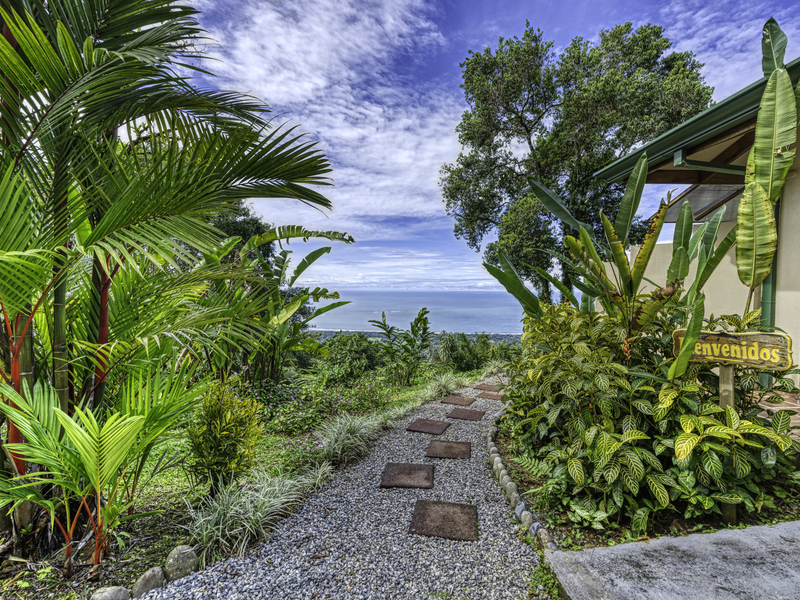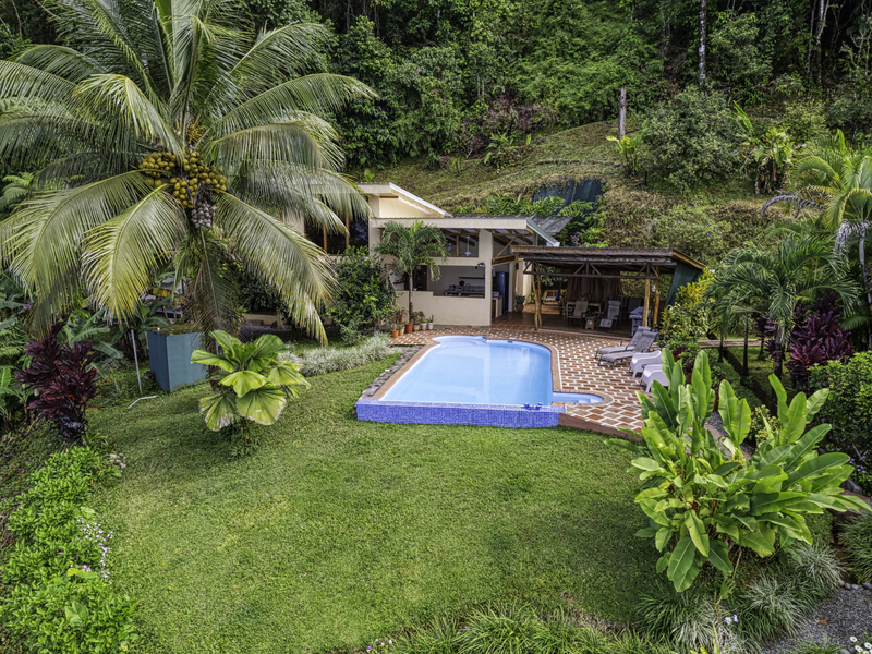 The large pool area offers captivating views of the ocean and surrounding mountains. Complementing the pool area is an outdoor shower, a large indoor shower and change room, a bathroom, and a large laundry area. Due to the steep mountains near the ocean, you can see the fin-shaped sandbar of Uvita's famous Whale Tail reef from the balconies of each room and different spots along the mountainside of this property.
