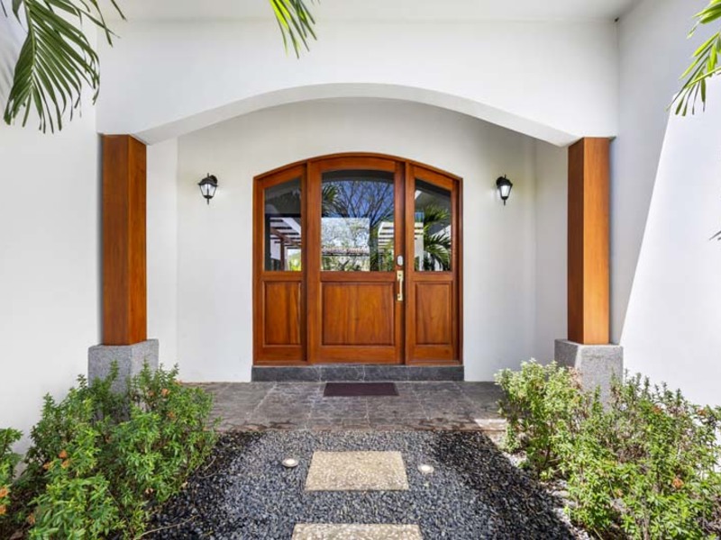 Approaching Casa Palma, you're greeted by its captivating U-shaped design, with the pool forming the centerpiece. The left-wing houses the social areas, while the right-wing comprises the bedrooms, each adorned with walls of glass patio doors that merge indoor and outdoor living seamlessly.