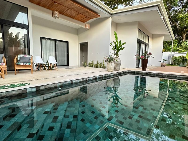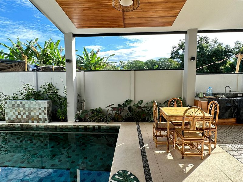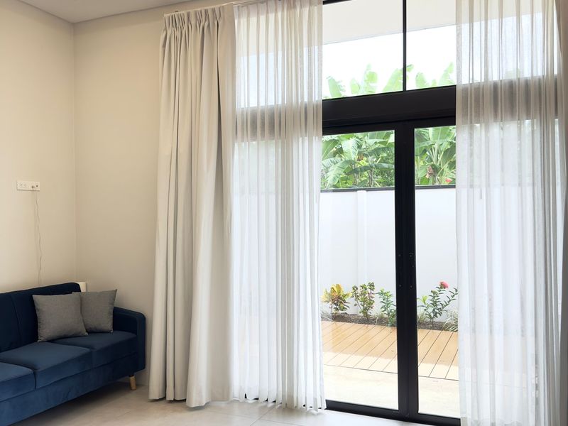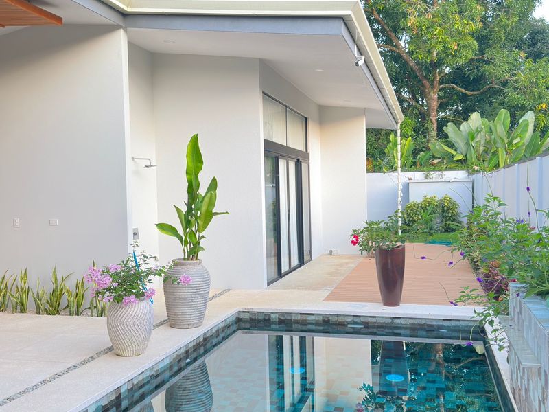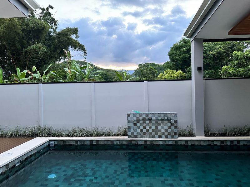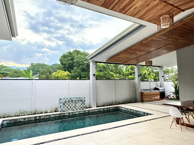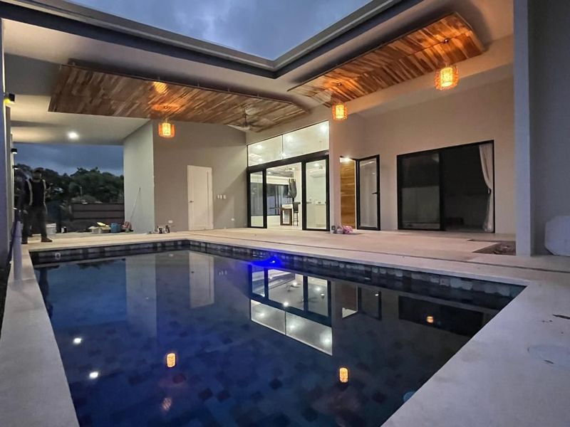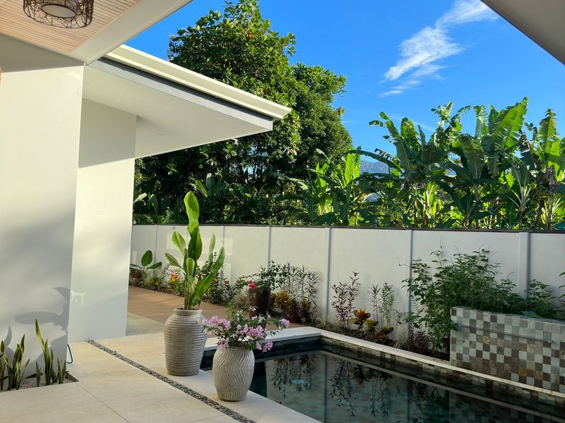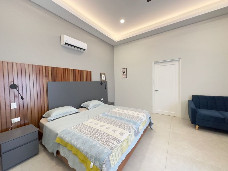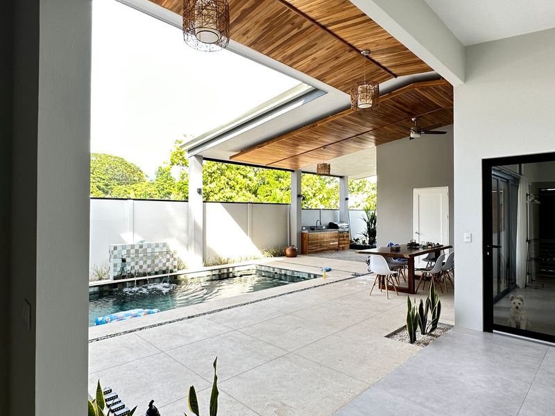 The epitome of indoor-outdoor living awaits beyond the glass doors as it opens up to a paradise. A sparkling pool shimmers under the sun, inviting you to take a dip on afternoons. Relax by the poolside while embracing tranquility and enjoying the soothing sounds of a cascading waterfall – it's your oasis.
