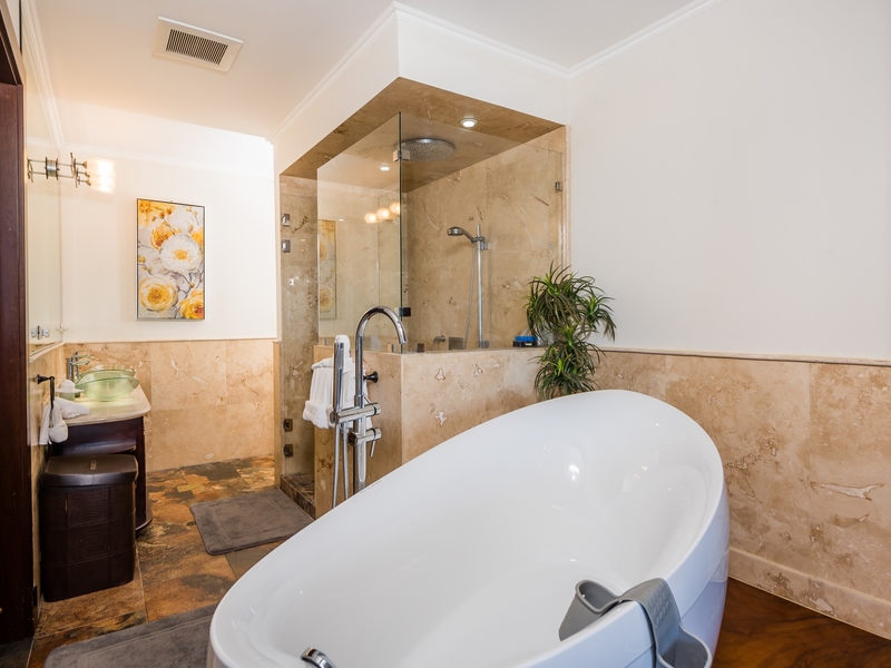 Step out through the glass doors onto the terrace from where you can savor views of the ocean studded with islands and the majestic coastline adorned with beaches. These sliding doors effortlessly connect outdoor spaces for a living experience. Facing West this condo offers sunsets and refreshing breezes year round. Keep an eye out for whales from this balcony!
