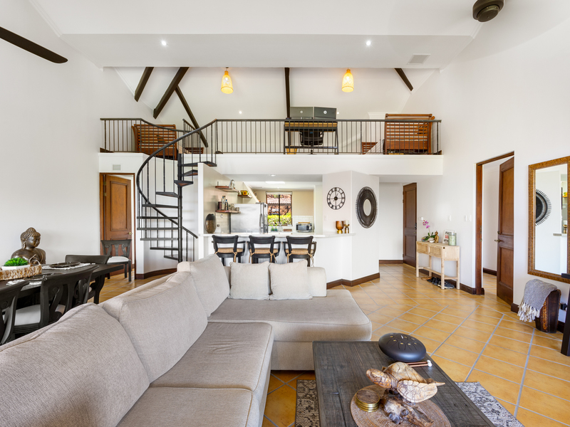 Situated atop a ridge overlooking the golf course and enveloped by a lush forest teeming with wildlife, Bougainvillea offers tranquility and natural beauty at every turn. Conveniently located, the penthouse is a short drive from international schools, the Liberia airport, and the newly constructed Flamingo Marina.