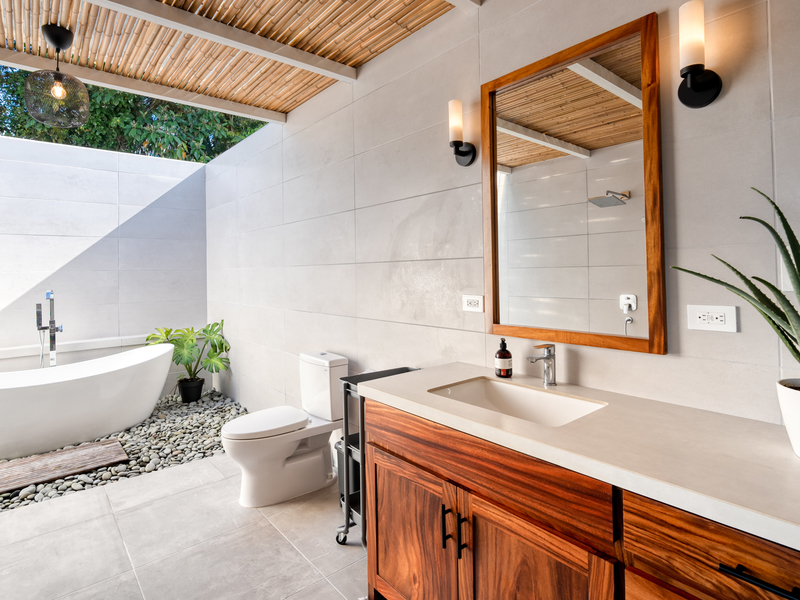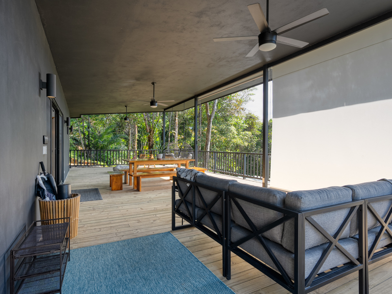This luxury modern 'mini homestead' is located in Ojochal, the culinary capital of Costa Rica. This private family home features breathtaking mountain and sunset views. Just outside the private main home gate, is a new construction container home featuring a 45”x20” covered wood deck with a full kitchen, private bedroom, and 2 bathrooms, ideal for a guest home, home school/office space or a rental space.