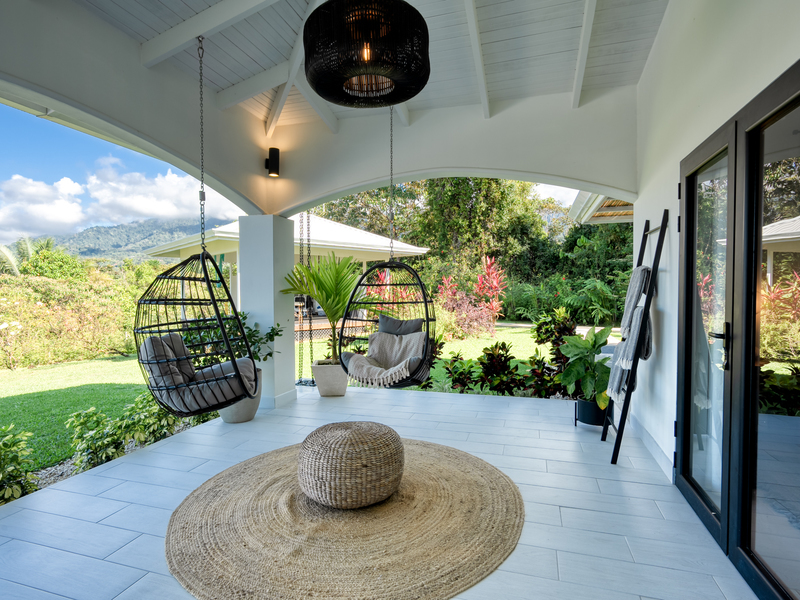 The property includes a free-range chicken coop, mature fruit trees (mango, banana, lime, coconut, mandarin and grapefruit, pineapple) and a Hügelkultur designed greenhouse. It also includes an outdoor covered work area, compost area as well as a separately fenced dog area, that can be repurposed for farm animals.