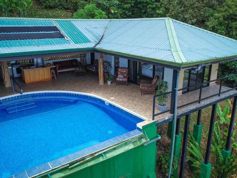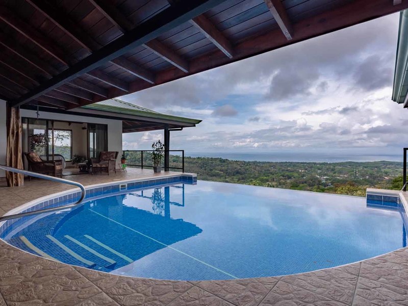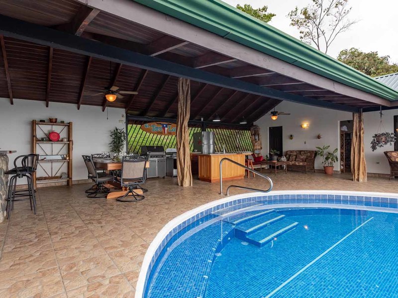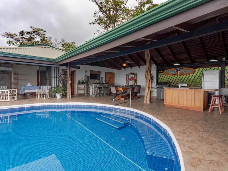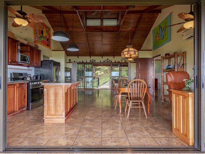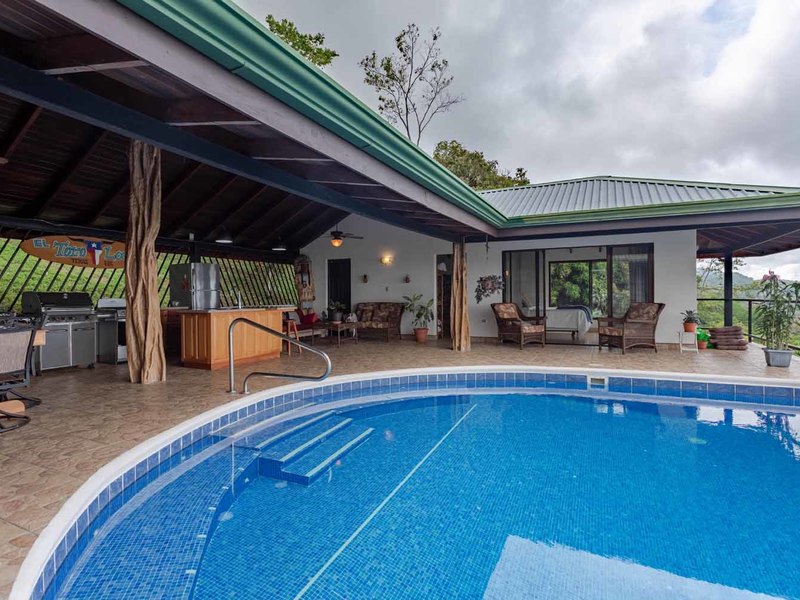 With over 3 acres of land, and set back from the road, this large 4 bedroom home offers privacy and an abundance of wildlife. Toucans, monkeys, sloths, and a multitude of birds will enjoy sharing this ocean view paradise property with you!