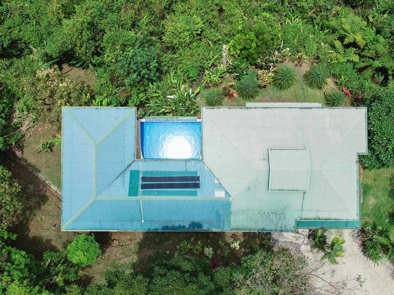 Butterfly Breeze Villa sits at 700 feet elevation on a very well maintained road, just minutes to the centre of town. Drive through the gate down the long driveway passing the fruit orchard with plenty of room for more plants and trees.