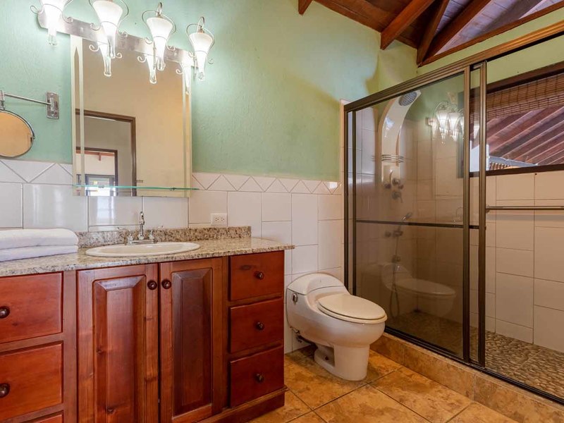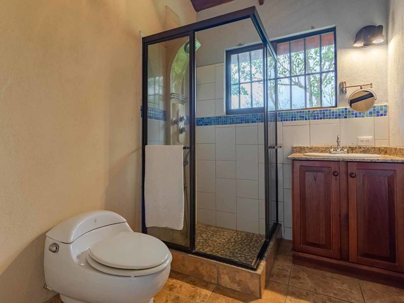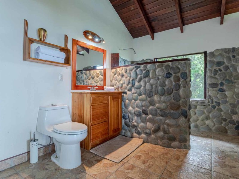 This main part of the house features two guest bedrooms and bathrooms, the large laundry room/pantry and glass windows and doors on all sides to allow the cooling breeze, the sounds of nature, and view to excite your senses.