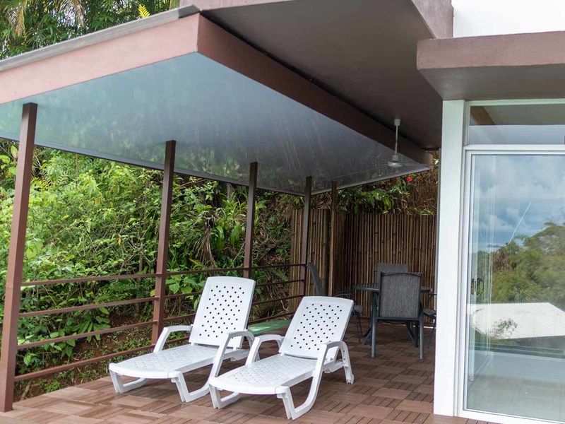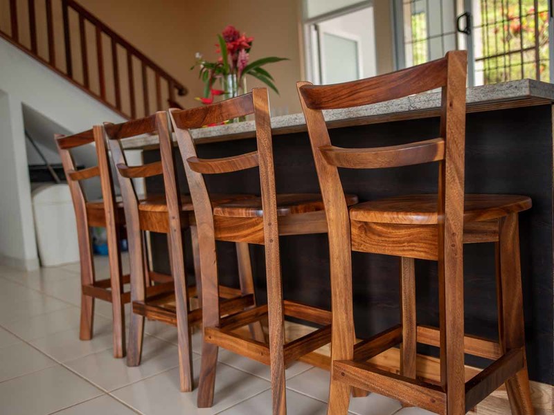 farmland. There are also some very select local hardwoods used that are rarely seen these days. Furniture is made of Ron Ron, the stairs and second-level flooring are all Nazareno (Purple Heart), and the beds up there are made of Cristobal. The building is constructed of heavy steel with concrete sheathing which provides both economy and durability.