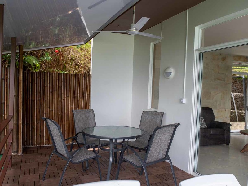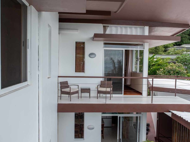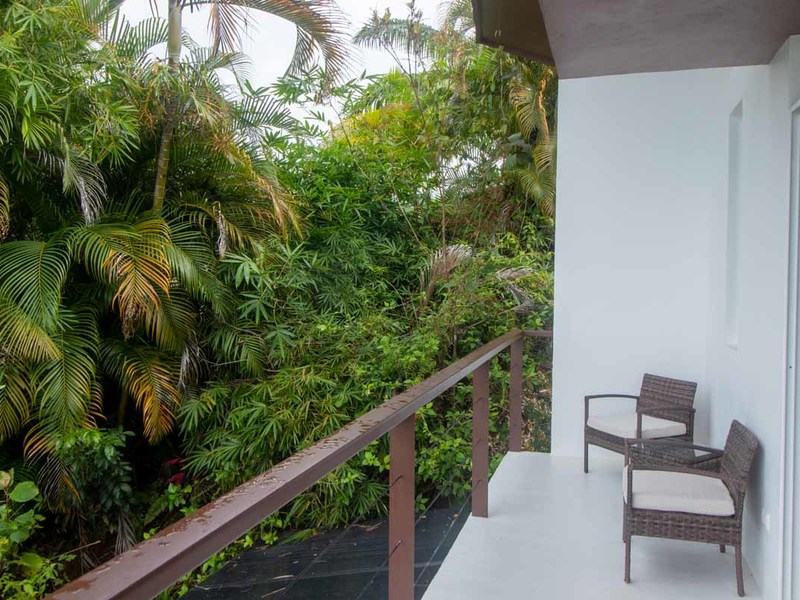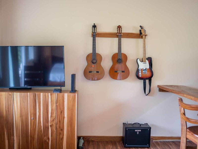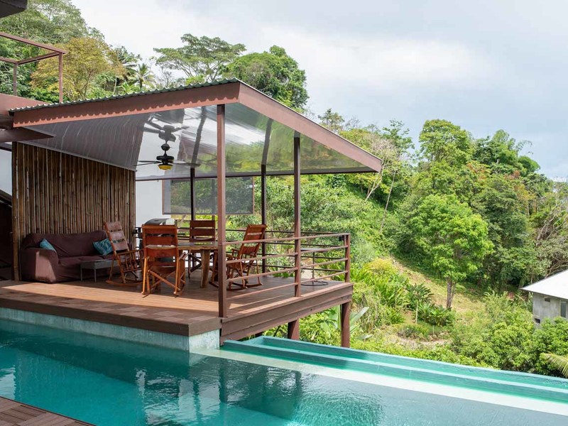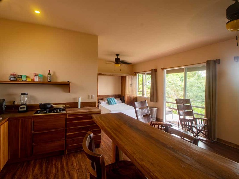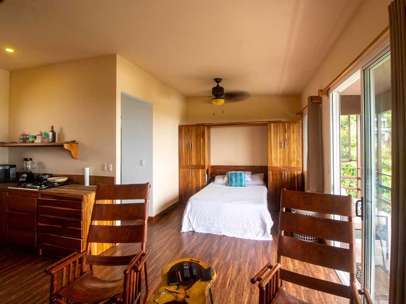 The second building is laid out with two en-suite bedrooms, with an office and bedroom combination on the first level that can be converted to two bedrooms for larger groups, and a studio setup on the second level with a small kitchen, a murphy bed, and huge private porch. Both bedrooms here have equally stupendous ocean views.
