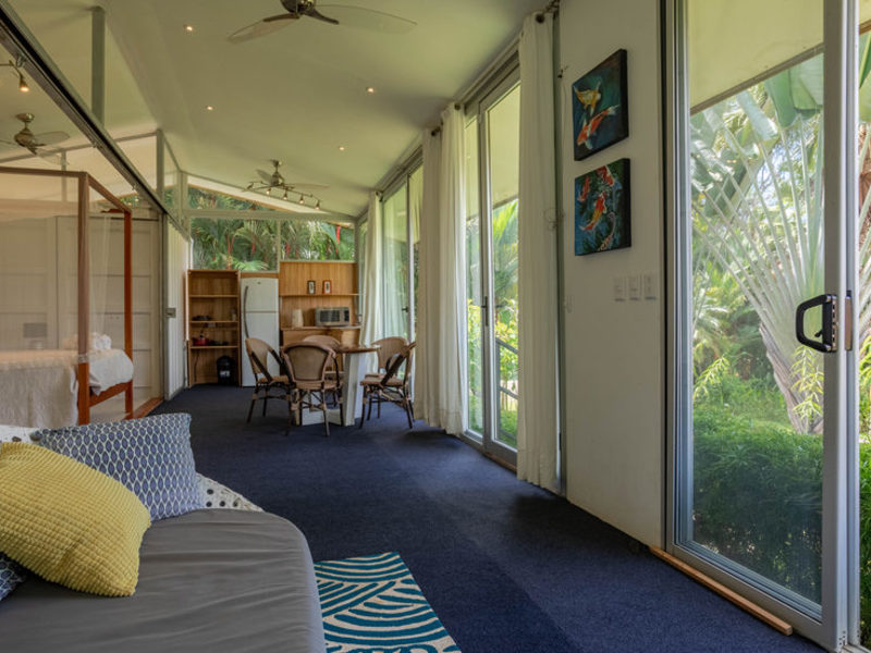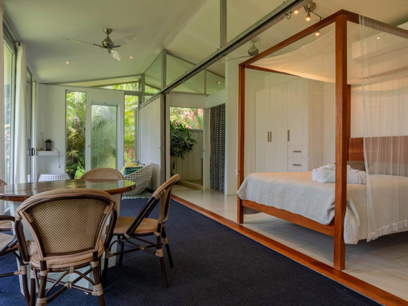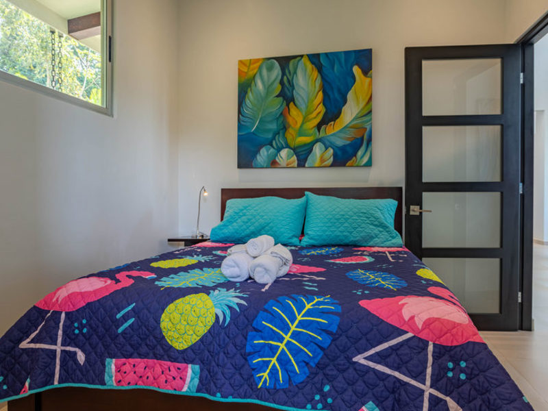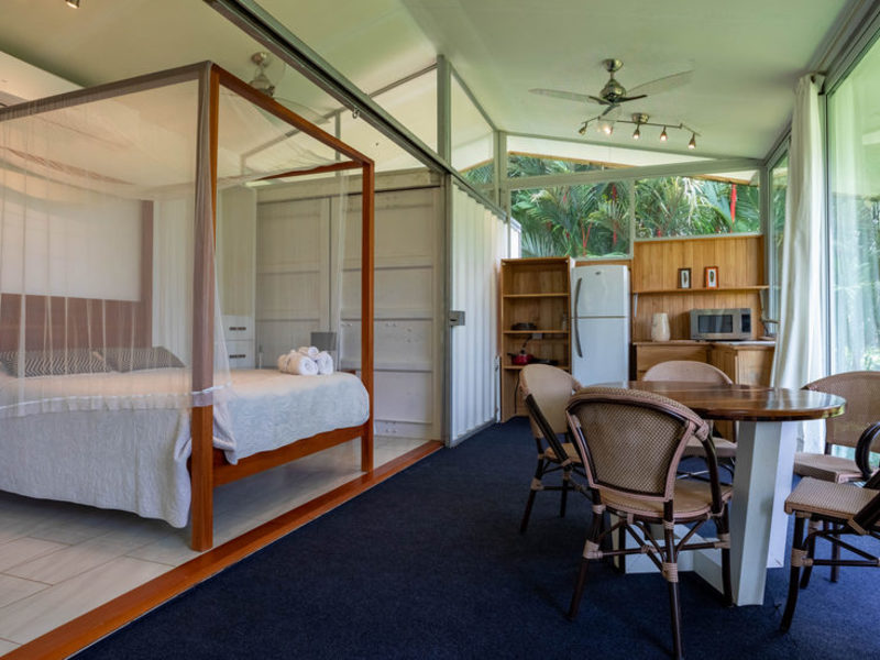 The guest home offers a private one-bedroom studio with a double bed, bathroom, walk-in shower, living area, dining, and kitchenette to relax and enjoy the beautiful surroundings of nature and abundant wildlife. The casita is fully air-conditioned with doors and windows that can open to experience the tropical air, sounds, and energy.