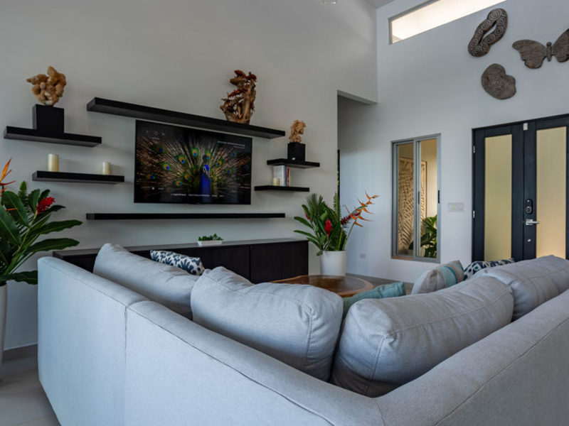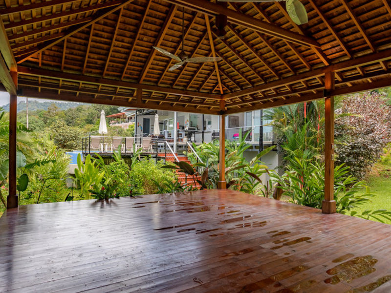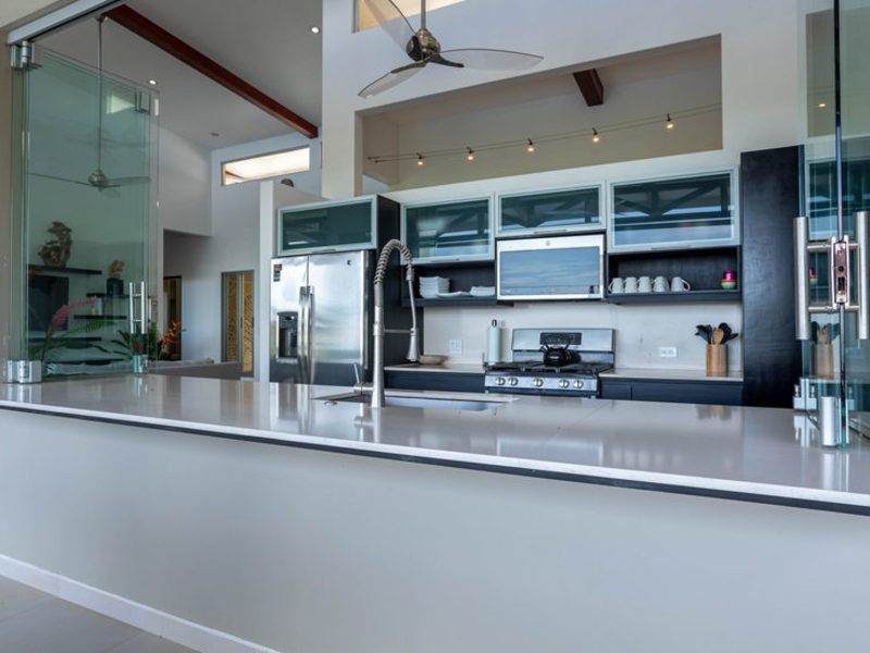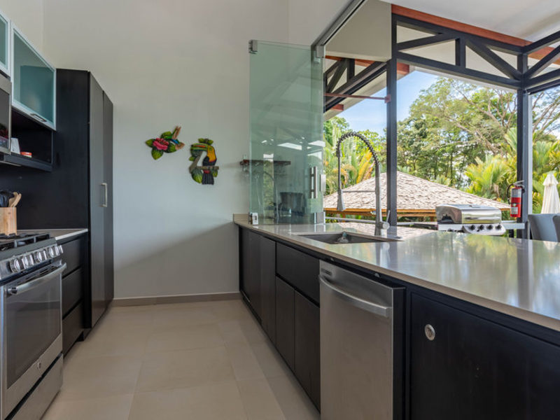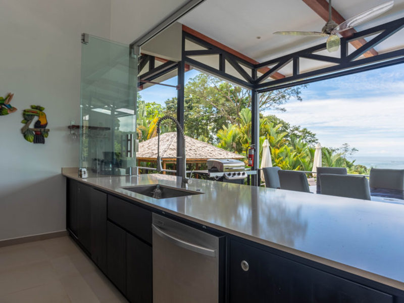 This new contemporary, Bali-style luxury home overlooks the South Pacific Ocean with breathtaking whitewater ocean, tropical rainforest, and sunset views. Completed in October 2017, this elegant residence is furnished with unique pieces from both local and international artisans chosen to bring serenity, relaxation, and inspiration. The large covered outdoor living and dining spaces seamlessly flow into the gourmet kitchen and indoor living area, all with breathtaking views, to create a light, airy, and peaceful space where you can see and hear the sounds of the ocean and jungle from all vantage points. Modern conveniences include Wi-Fi throughout the home and cable TV. The fully equipped gourmet kitchen comes complete with an automatic espresso/cappuccino/latte machine for the coffee connoisseur.