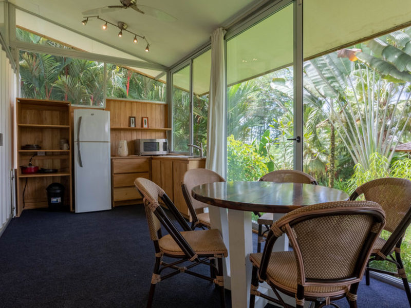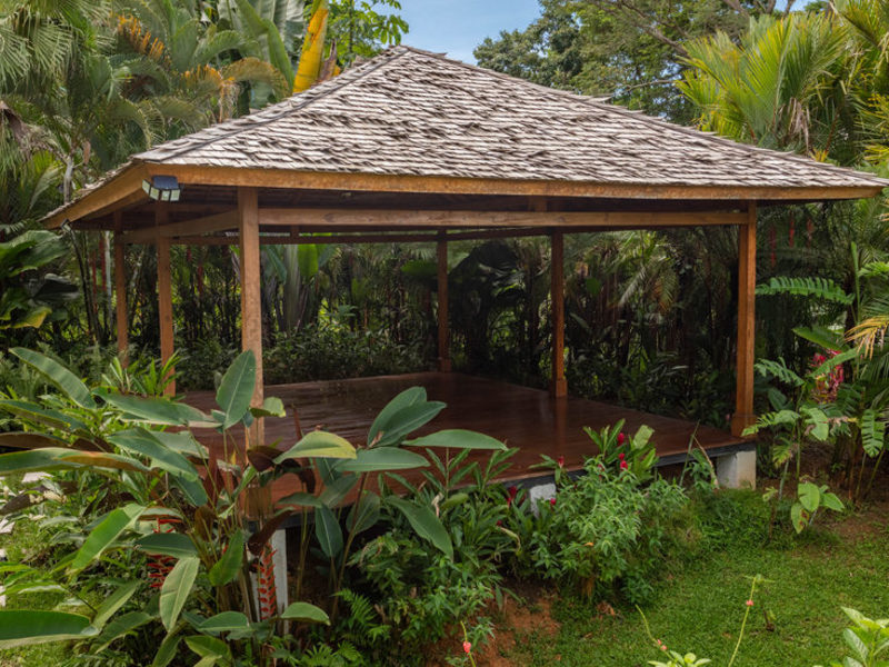 The hand-crafted Bali-inspired Yoga Shala in the tropical rainforest is available for yoga, meditation, tai chi, qigong, and other mind-body-spirit practices. A private yoga instructor is available upon request for you to begin or maintain your practice of well-being in mind, body, and spirit.