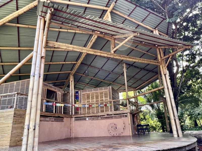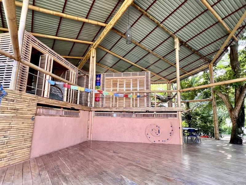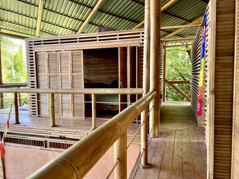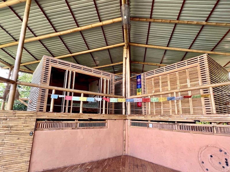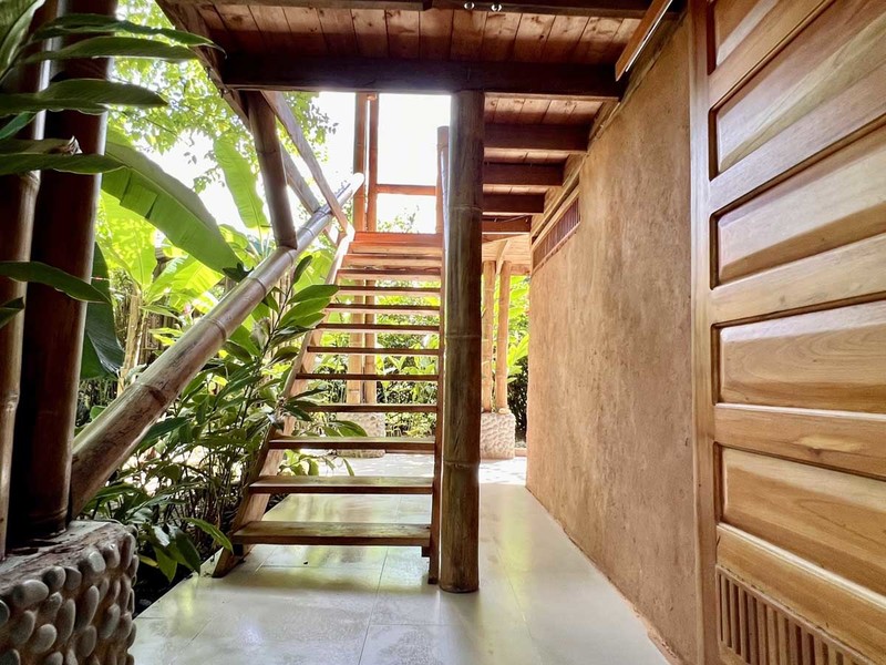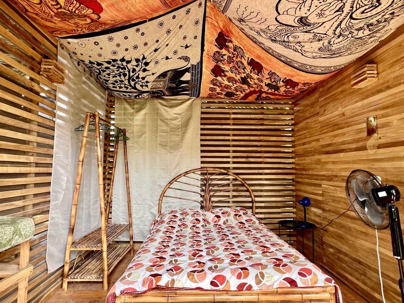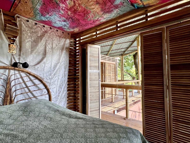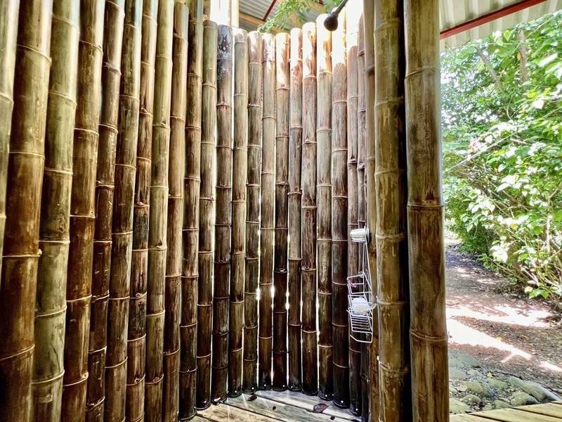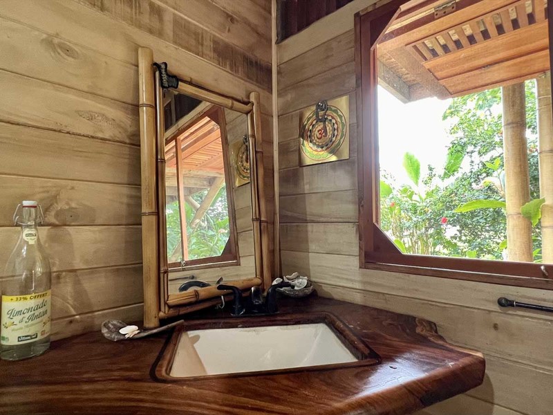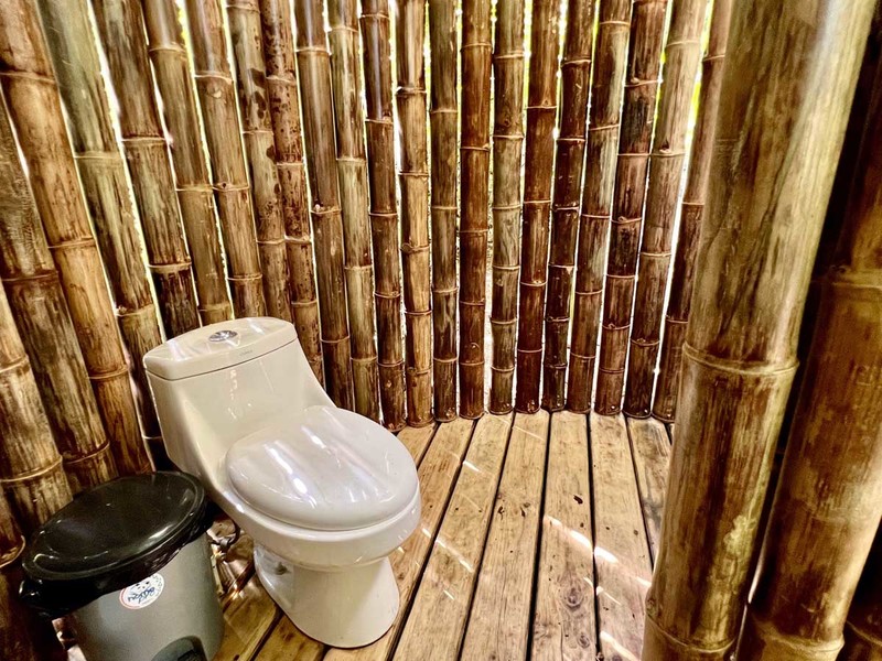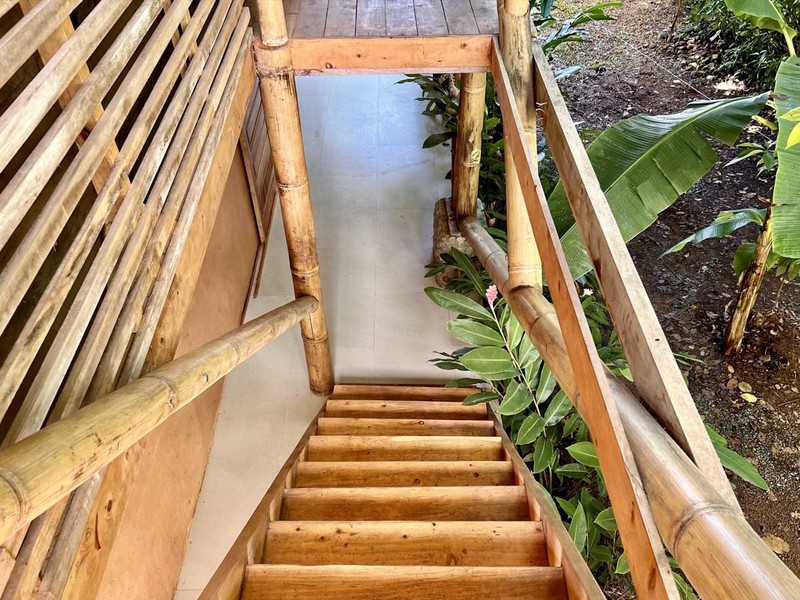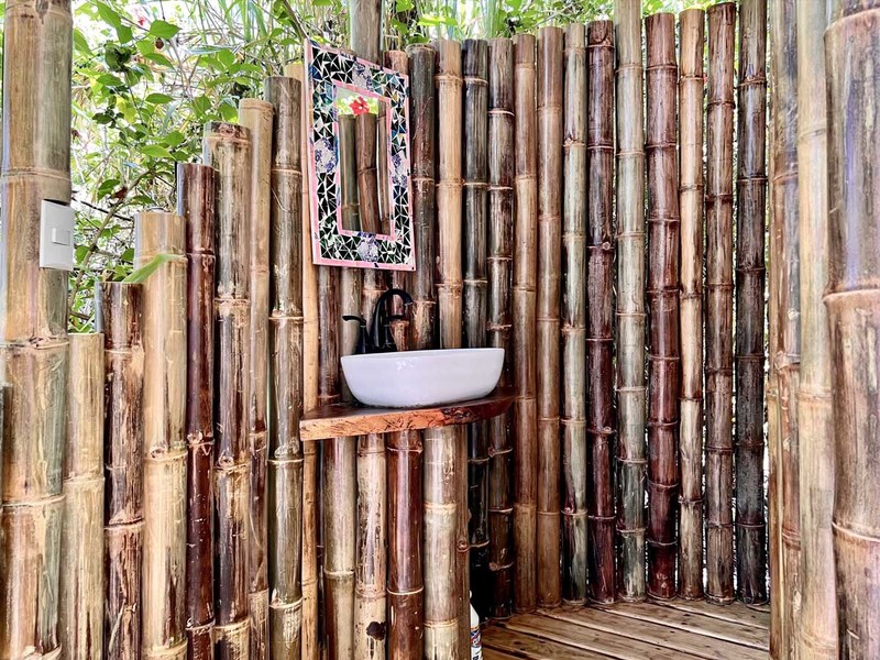 When it's time to unwind and freshen up, you'll find the bathroom located downstairs in a bamboo spiral, adding an exotic touch to this already extraordinary abode. The location of the bathroom is perfect as it provides privacy and ample space for your everyday needs.