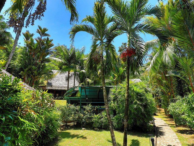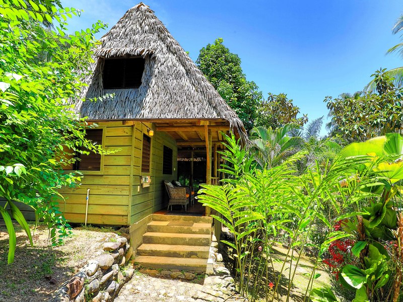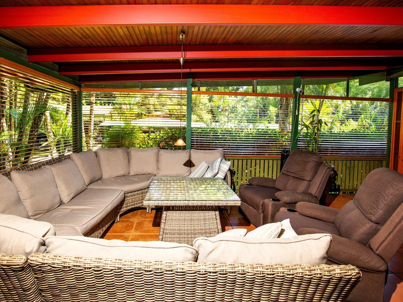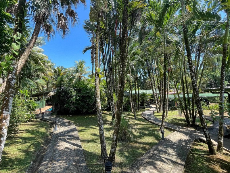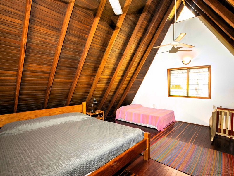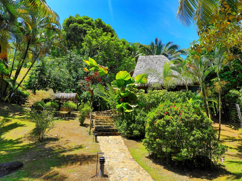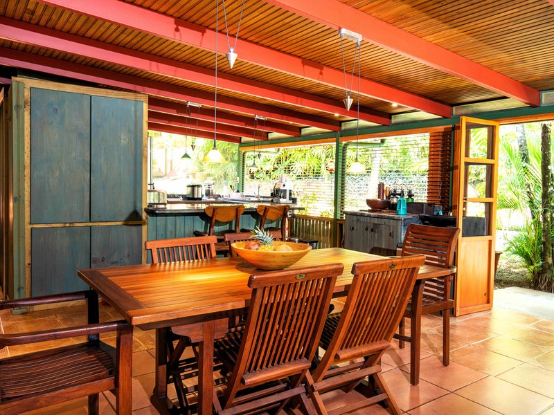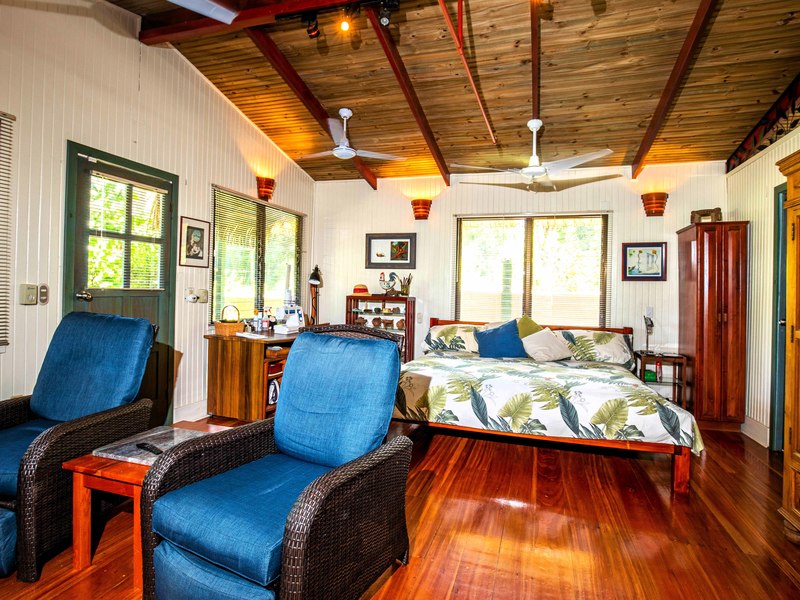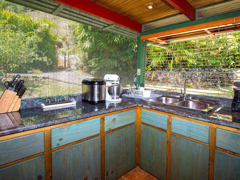 The verandas the timber construction reaching up, to the ceiling and the charming A-frame design all contribute to creating a rustic and romantic atmosphere. These cabins can be utilized as guest suites. Rented out for long stays. Adjacent to the residence there is a covered carport that can accommodate up to five cars ensuring safe, secure, and dry access. To provide opportunities for relaxation there is a resort-style pool with a covered deck area and a jacuzzi. Additionally, you can enjoy the / sauna or take advantage of various lounges, umbrellas, and BBQ areas scattered throughout the property. For those seeking tranquility amidst nature's bounty, there is a hammock hut surrounded by plants fruit trees like pineapples and pepper plants along with the sounds of the jungle. The laid-back atmosphere is further enhanced by murals depicting local flora and fauna. Fitness enthusiasts will appreciate having access to a covered cardio gym attached to the residence that includes bikes