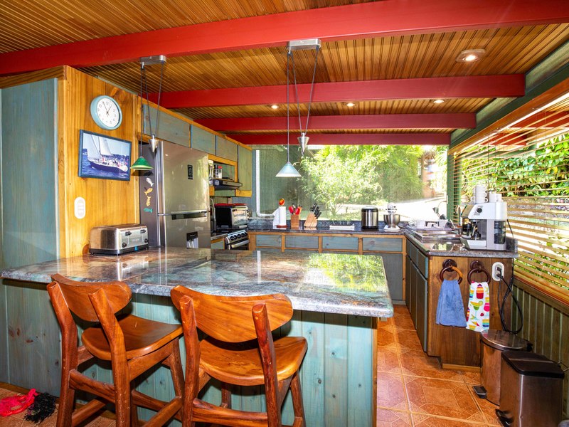 The hill nearby is all set for development. You have the opportunity to build a guest house with amenities, like a swimming pool, a sun or yoga deck, and a beautiful garden or orchard. Alternatively, you can transform the hill into a jungle oasis. This area in Ojochal attracts plenty of tourists as evidenced by the restaurants, shops, cafes, hotels and cabins, yoga and fitness centers, and other tourism businesses. If you're interested in options, additional cabins or alternative accommodation types would thrive here.. Perhaps you'd like to bring something to life like a sport or leisure facility, café or restaurant? Your imagination sets the limits! If you decide to pursue a venture on the hill separate vehicle and pedestrian access can be provided to make it entirely self-contained. It would then be possible to fence off this area from the property and create a lot exclusively for commercial use. Are you ready for an opportunity? A home along with the potential, for developing an income stream on the hill awaits!