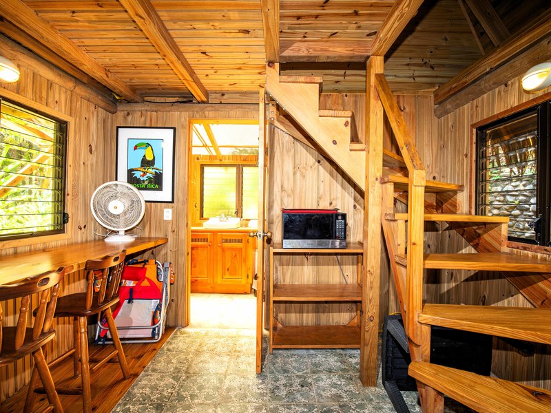 Now let's delve into the details of each self-contained cabin—there are three in total! Each cabin spans two levels. Features its bathroom along with fully equipped kitchens that come complete with all necessary amenities. Additionally, you'll find dining areas, within each cabin.