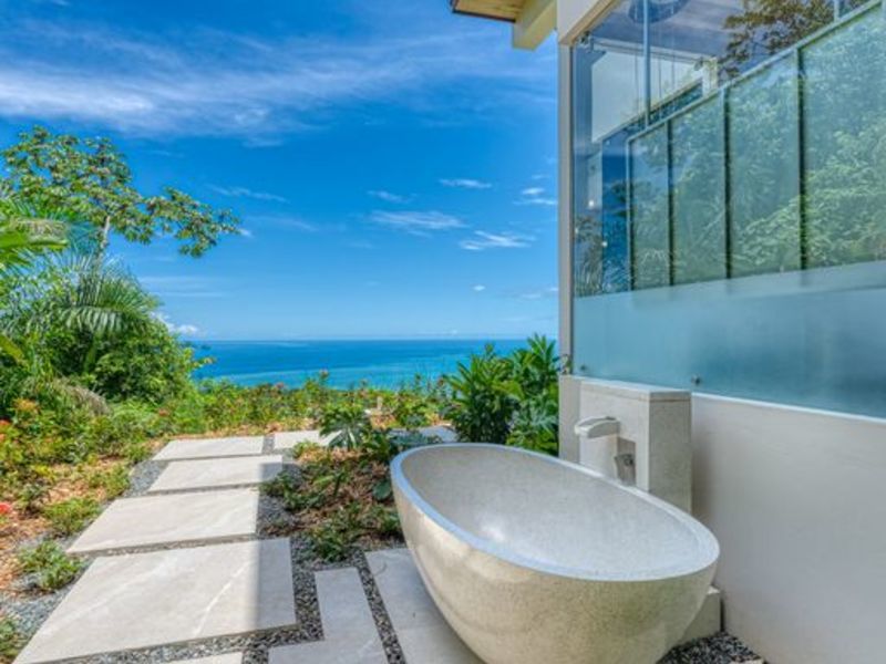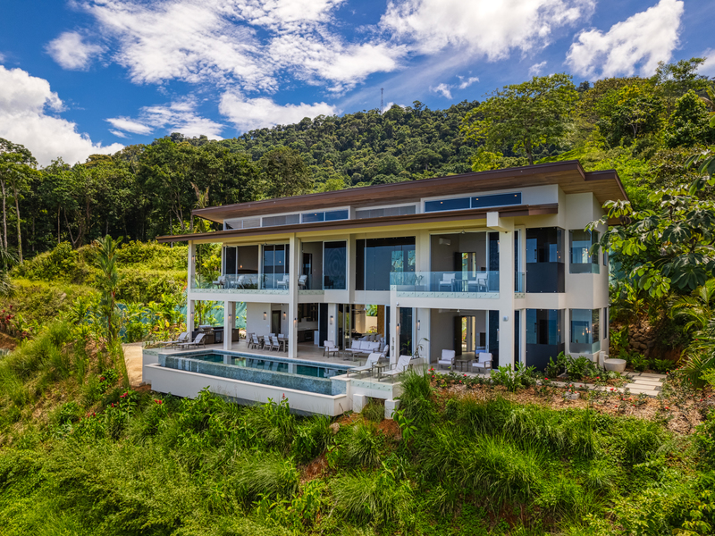 Your entrance into this enchanting estate is marked by a cascading waterfall, offering an unparalleled tropical experience that sets the stage for the magic that awaits within. Here, you'll discover one of Costa Rica's rare panoramic coastal views, a truly mesmerizing location that spans from secluded beaches to vibrant jungles teeming with wildlife.