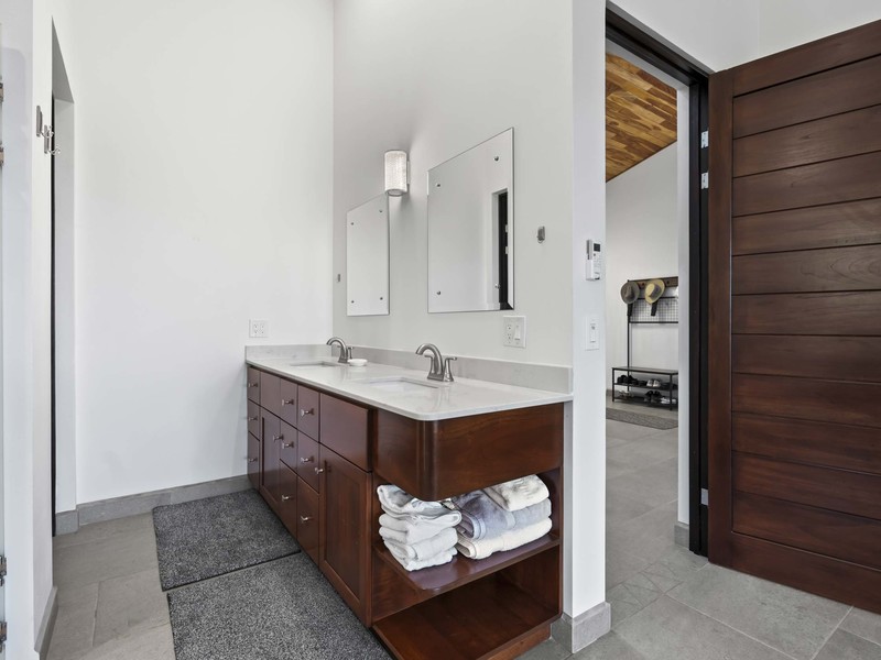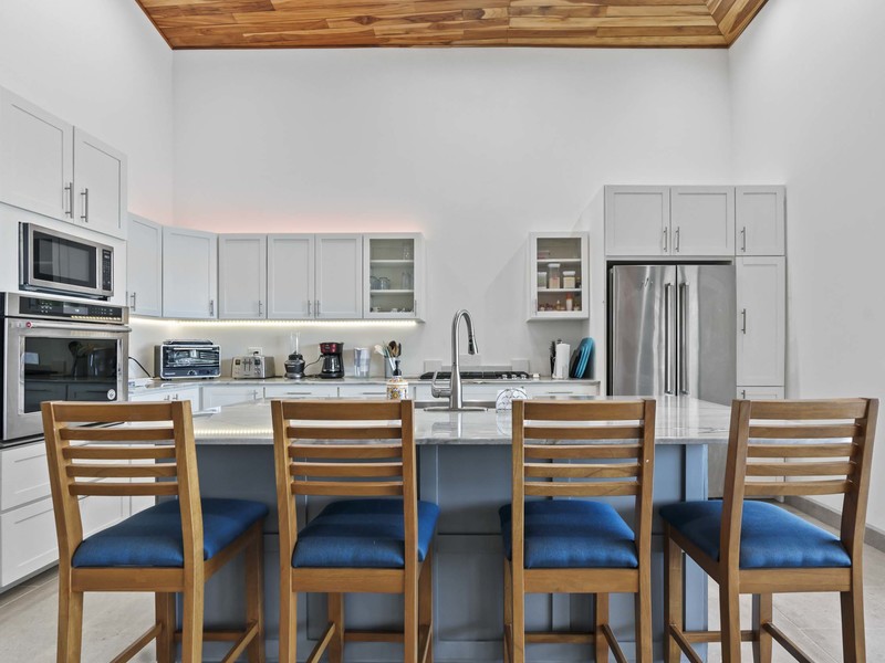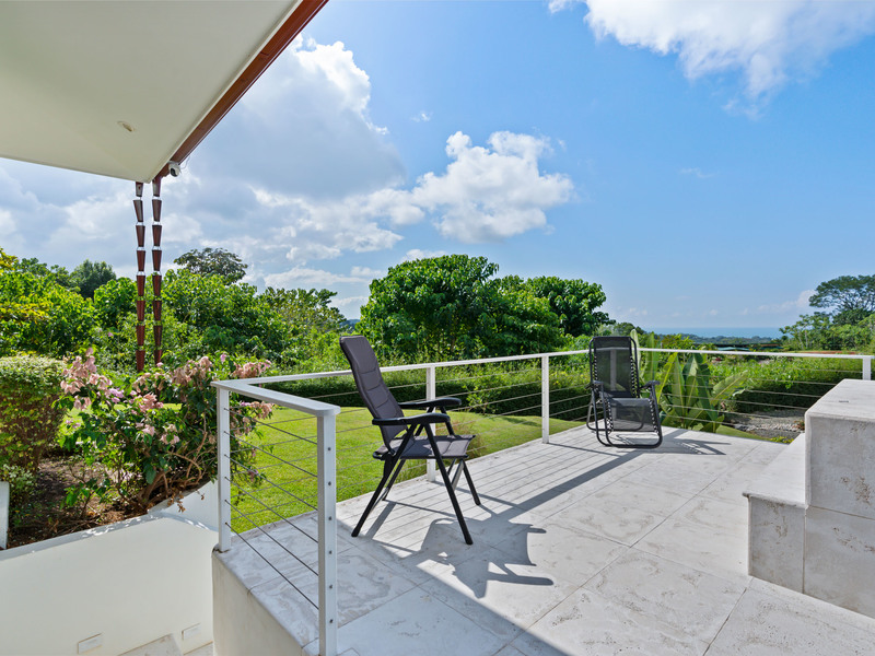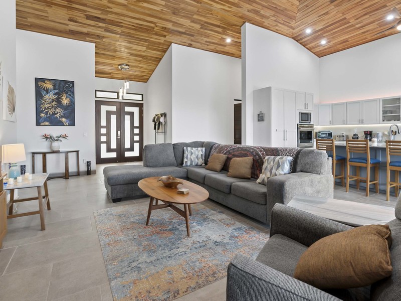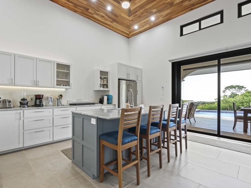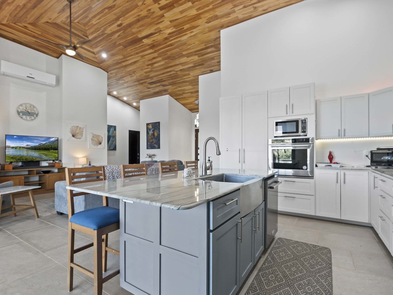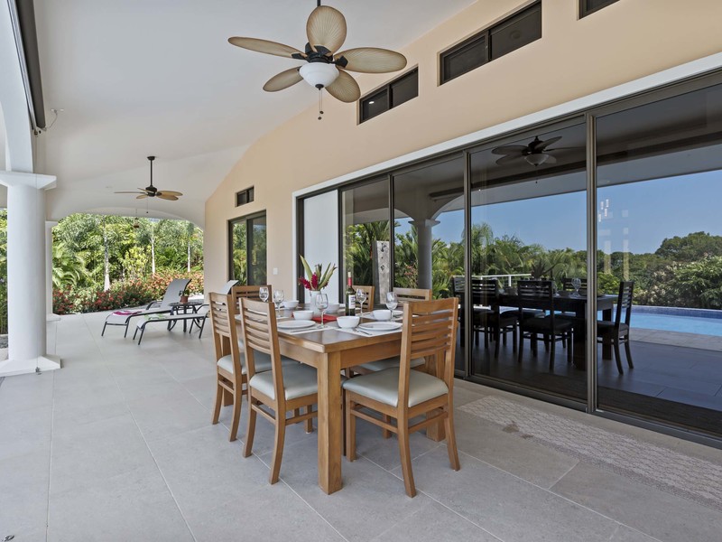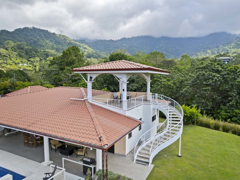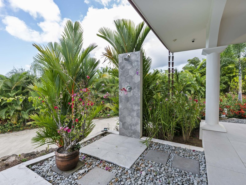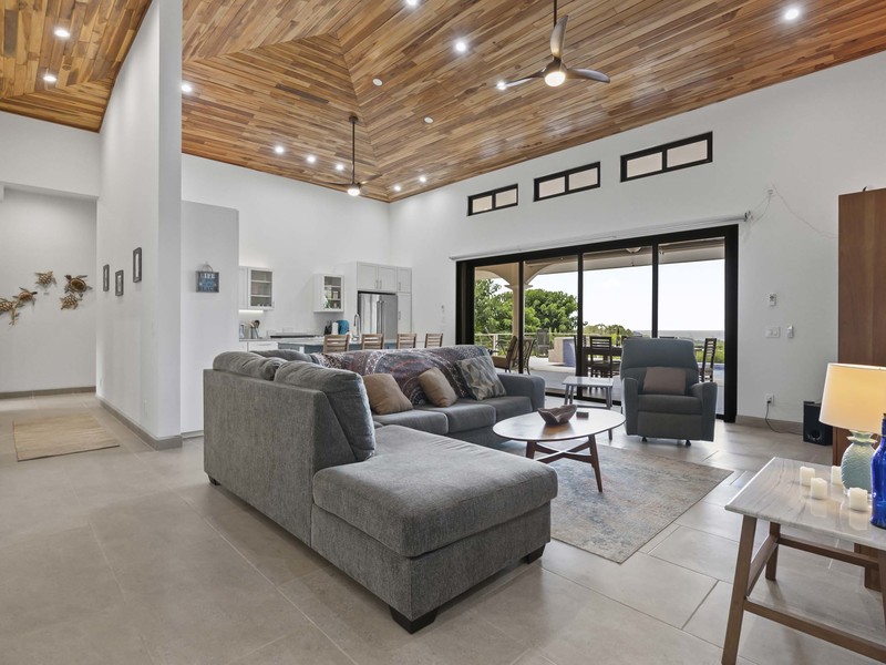 The outdoor living area truly distinguishes this home. It boasts spaces that are ideal for relishing the pleasant tropical climate. As soon as you slide open the glass doors you'll step into a charming covered outdoor living space equipped with ceiling fans and high-quality furniture for your utmost comfort. A step away there's a refreshing pool that invites you to take a dip while enjoying the breathtaking ocean views. To add to the soothing ambiance there's a pool waterfall that provides a soundtrack to enhance your relaxation time. If that isn't enough there's also a rooftop observation deck adorned with ceiling fans and cosy furnishings. This deck offers the vantage point to savor your morning coffee or unwind in the evening while gazing at the ocean and marveling at the mountains covered in verdant jungles that serve as a picturesque backdrop to this luxurious tropical getaway. You may find it challenging to decide which spot to choose for unwinding and immersing yourself in the beauty of your surroundings. Undoubtedly you're up for this delightful dilemma.