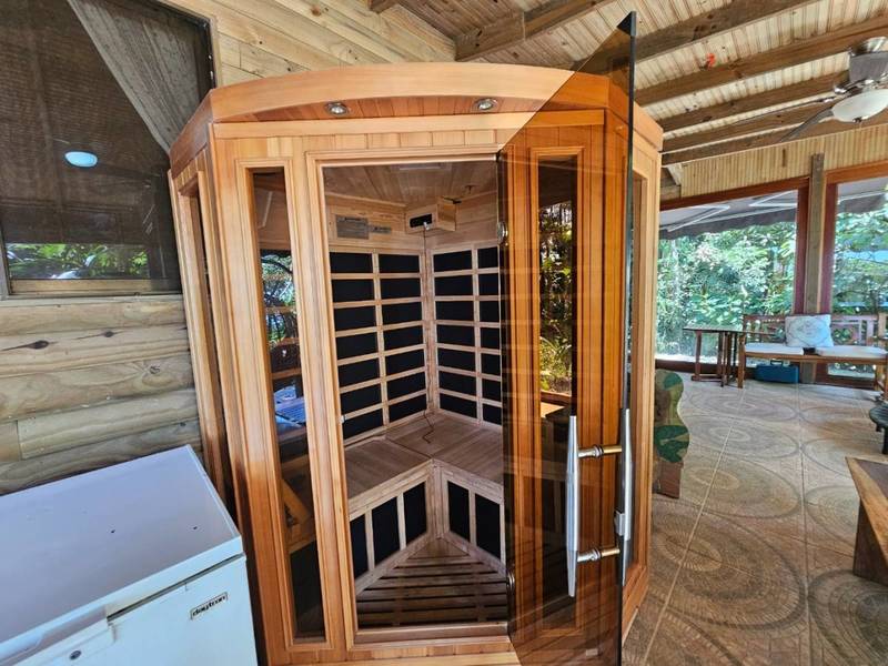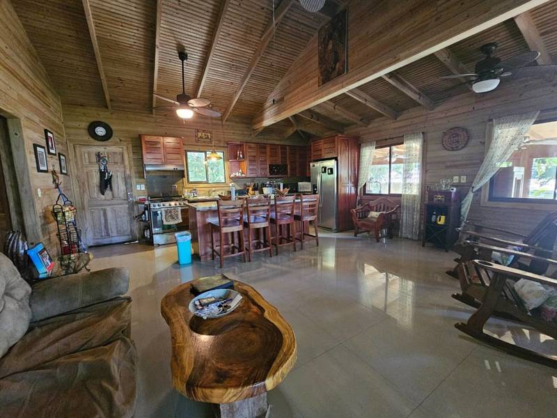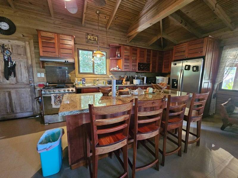 Step into the inviting log home, featuring 2 bedrooms and 2 baths. Revel in the breathtaking ocean views from the comfort of your home, surrounded by the serenity of lush jungle and the soothing sounds of nature. The property showcases an open-concept great room and kitchen with a convenient sit-up breakfast bar. Enjoy a spacious sunroom with a sauna, a large master bedroom with a walk-in closet, and an en-suite bathroom. A second guest bedroom and bathroom provide ample space. Wake up to the delightful symphony of birdsong and unwind on your expansive private, covered deck.