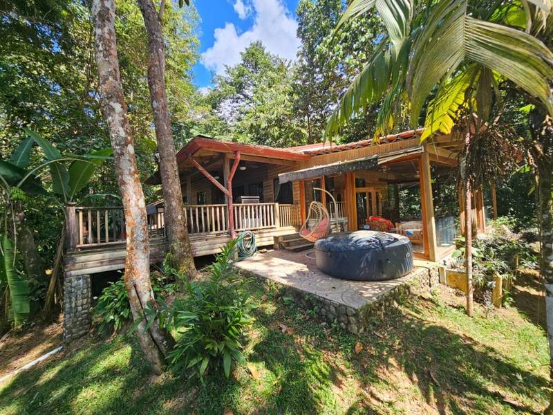 Nestled in the tranquil mountains above Uvita, this extraordinary 2-acre property beckons with not one, but two distinctive homes, each exuding its unique charm and character.