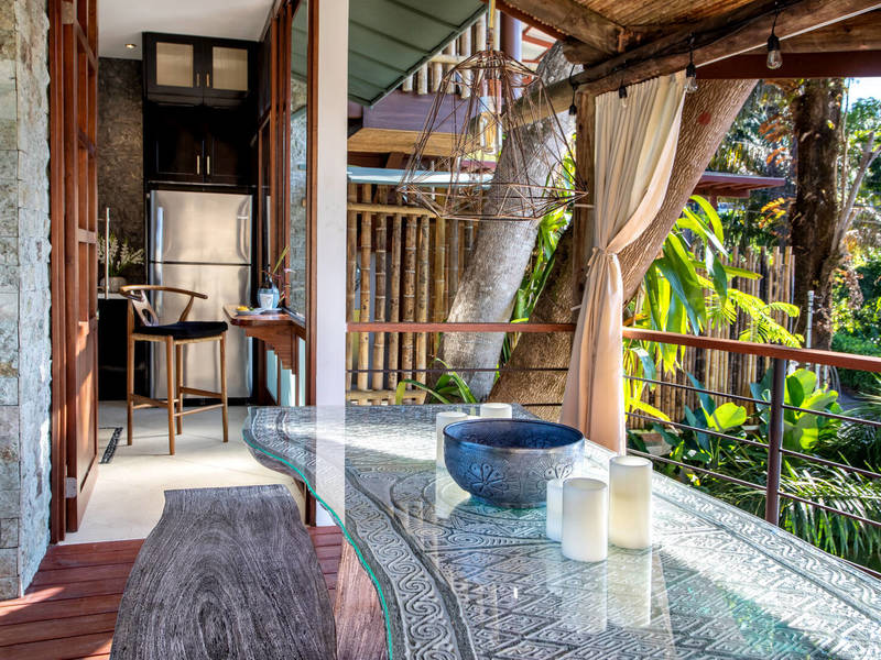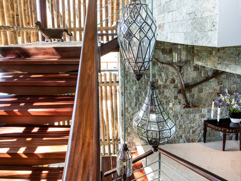 The residence is adorned with captivating decor, premium luxury finishes, lofty ceilings that invite a natural sea breeze, and delightful intricate touches throughout. Moving up to the floor reveals a kitchen designed for culinary enthusiasts soaring ceilings, above the dining/living space that opens onto an alfresco lounge beside a generously sized and inviting pool. Every corner of this level offers awe-inspiring views. Ascend to the floor where you'll find the pièce de résistance. Two stunning master suites featuring en suite bathrooms and personal balconies that elevate this home to a billionaire treehouse status. Thoughtfully equipped with every luxury amenity this property promises a notch five-star living experience.