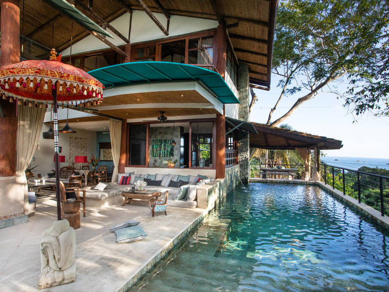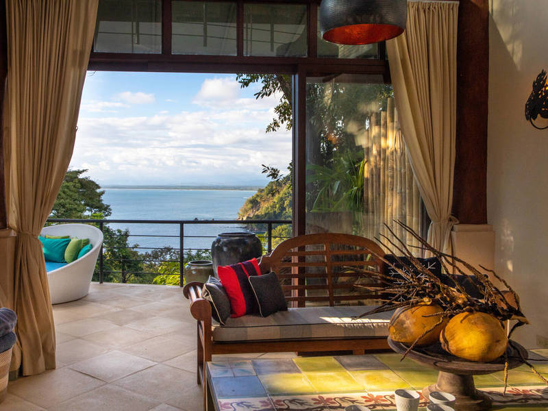 Prepare to be amazed by this three-story home that boasts two distinct ocean views in the highly sought-after Manuel Antonio area. Crafted with creativity and meticulous attention to detail Casa Dos Vistas stands out as the addition to luxury living in the region. Ensuring privacy and security a pathway of crafted stone steps leads to an imported door frame at the entrance. The first two master suites, each with their balconies offering breathtaking vistas are located on this level.