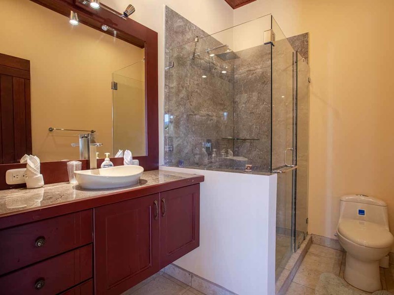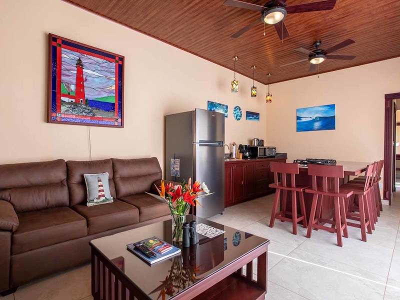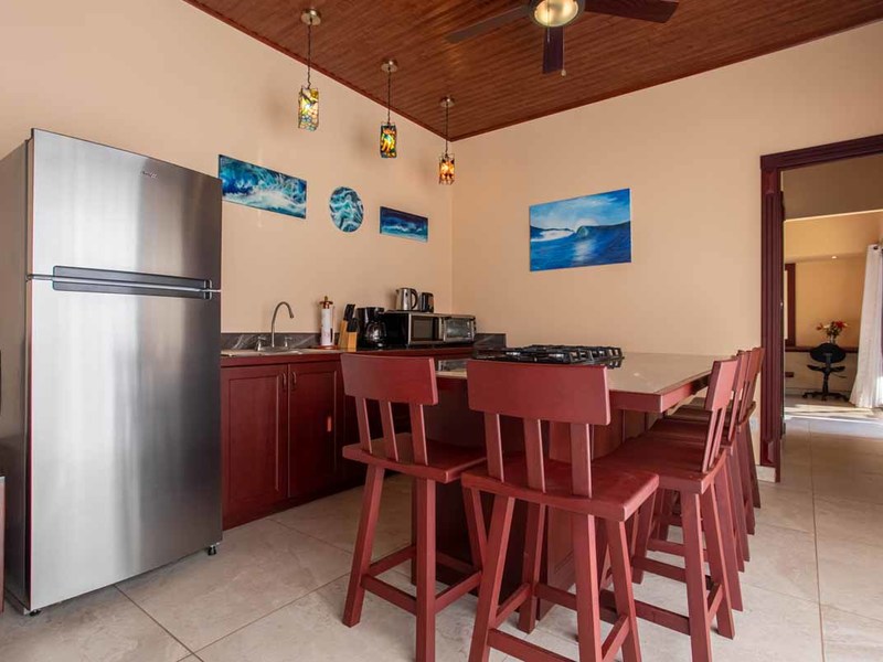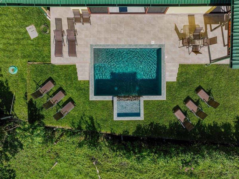 Casa Dos Palmas provides various outdoor decks and living areas that offer ample space for relaxation and entertaining. The pool, with a soothing waterfall feature, is shared among all units, ensuring a refreshing dip in the water is always available. Beyond the interior, the outdoor amenities provide a perfect backdrop for those seeking a tranquil retreat.