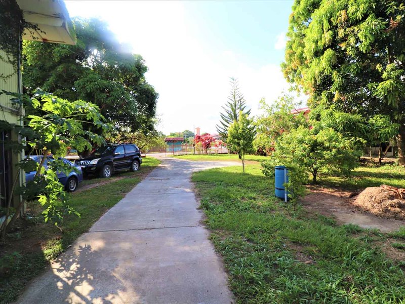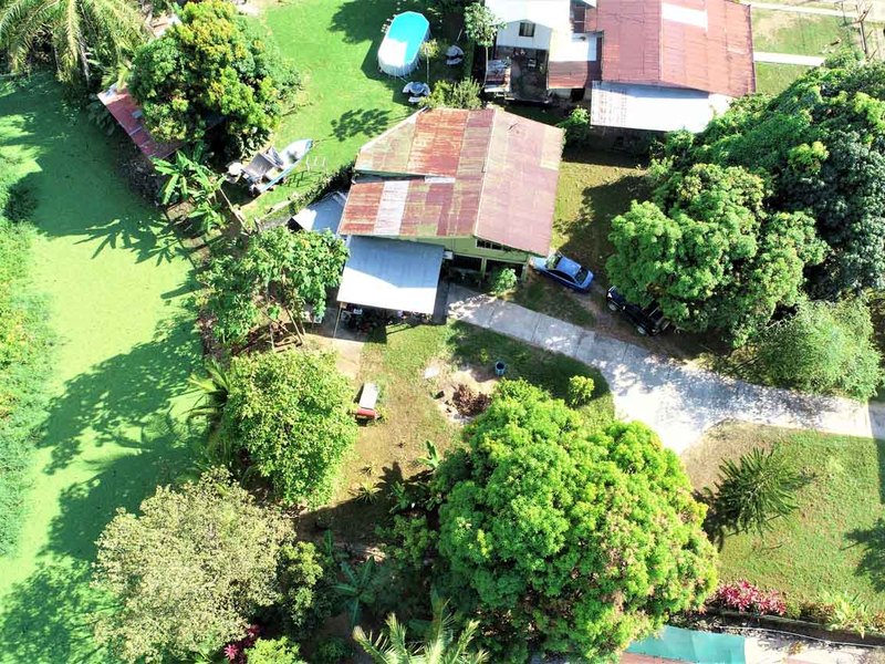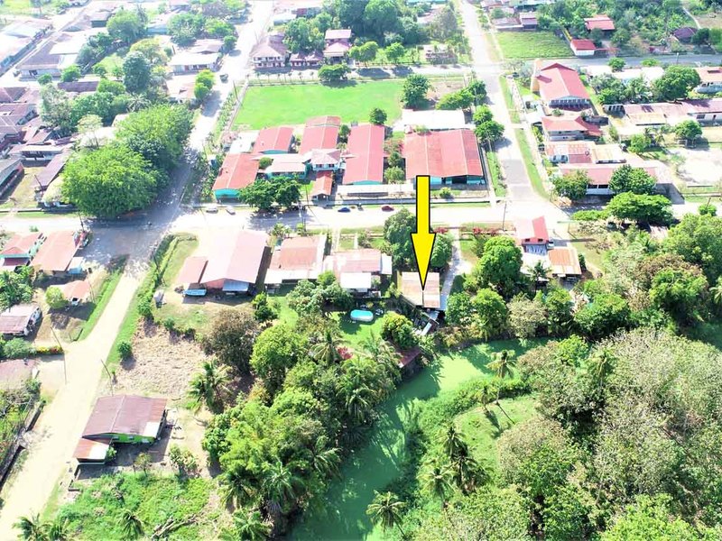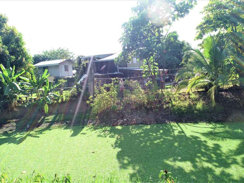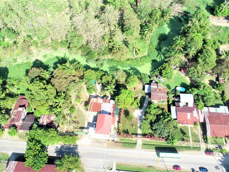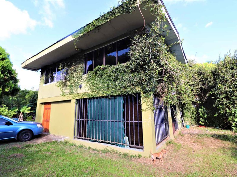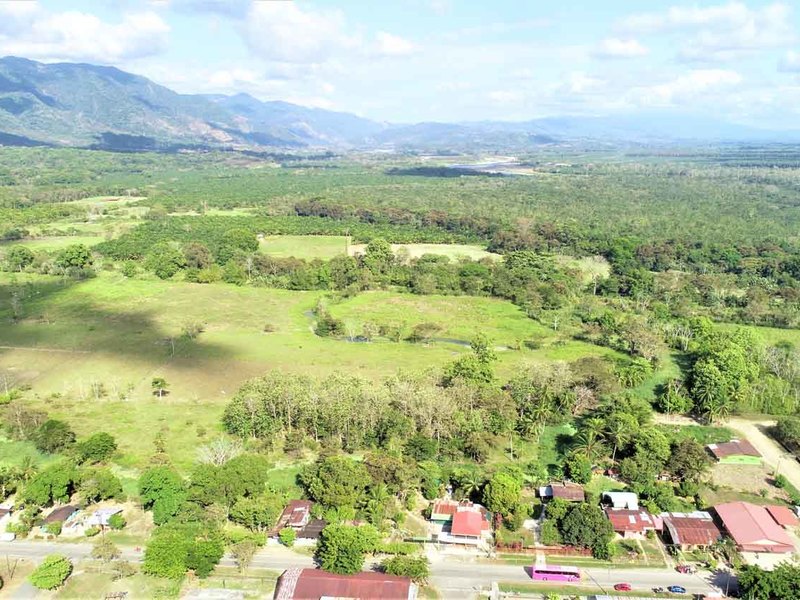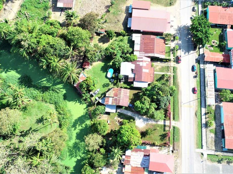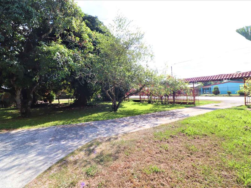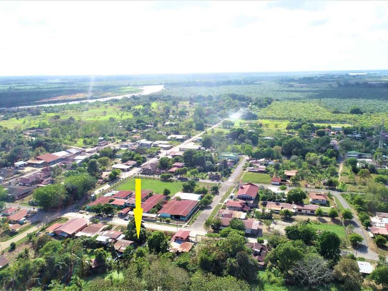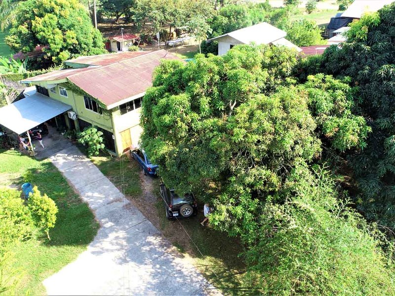 It is located in front of a paved street in the center of Ciudad Cortes, right in front of the community school. It is completely fenced and has a huge electric gate.