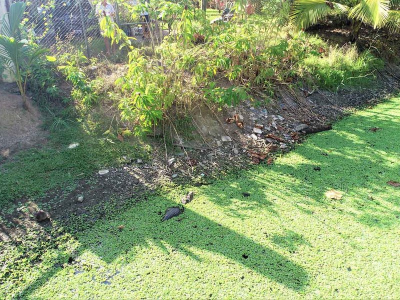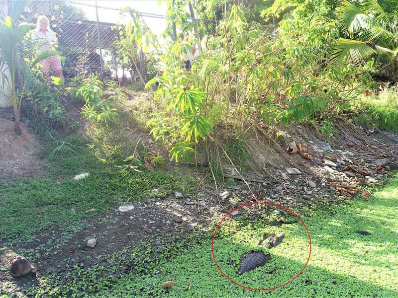 and other species such as turtles and a couple of real CROCODILES, they are the family’s pets living outside the fence.