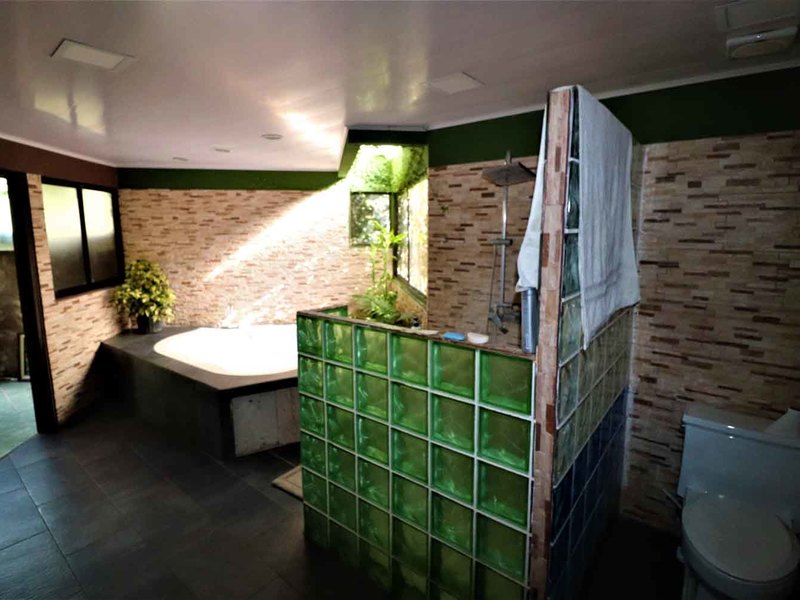 Hay de 5 habitaciones (2 en el segundo piso y 3 en el primer piso) y 2 baños completos (uno en cada piso), y un jacuzzi en el segundo piso.