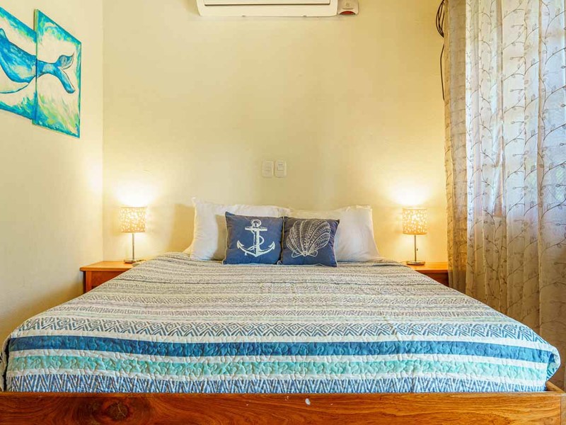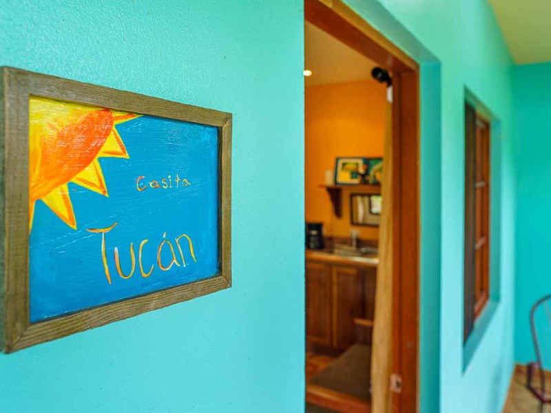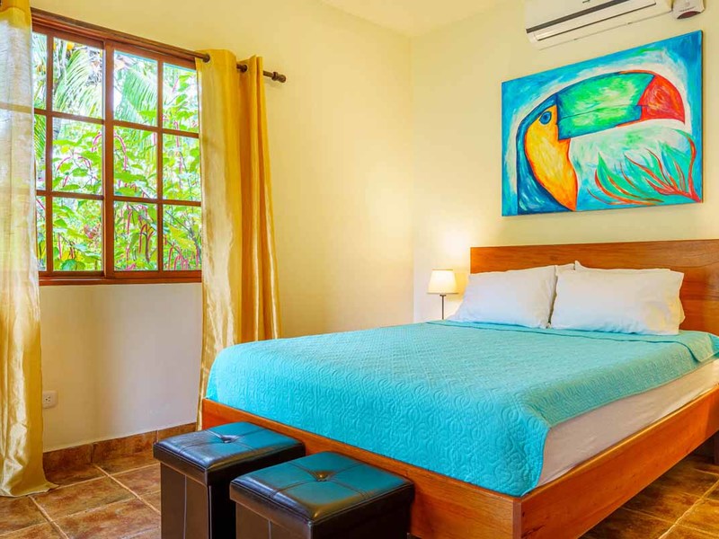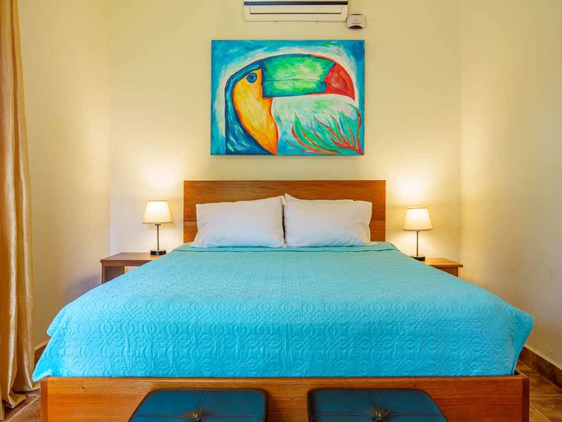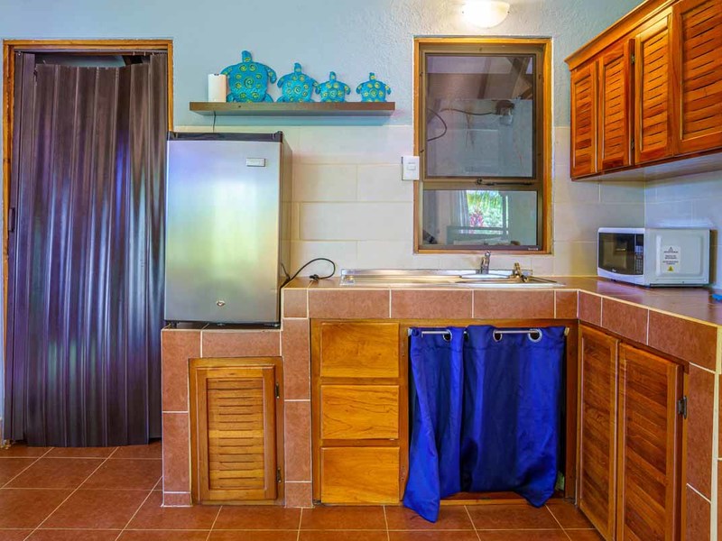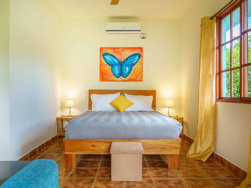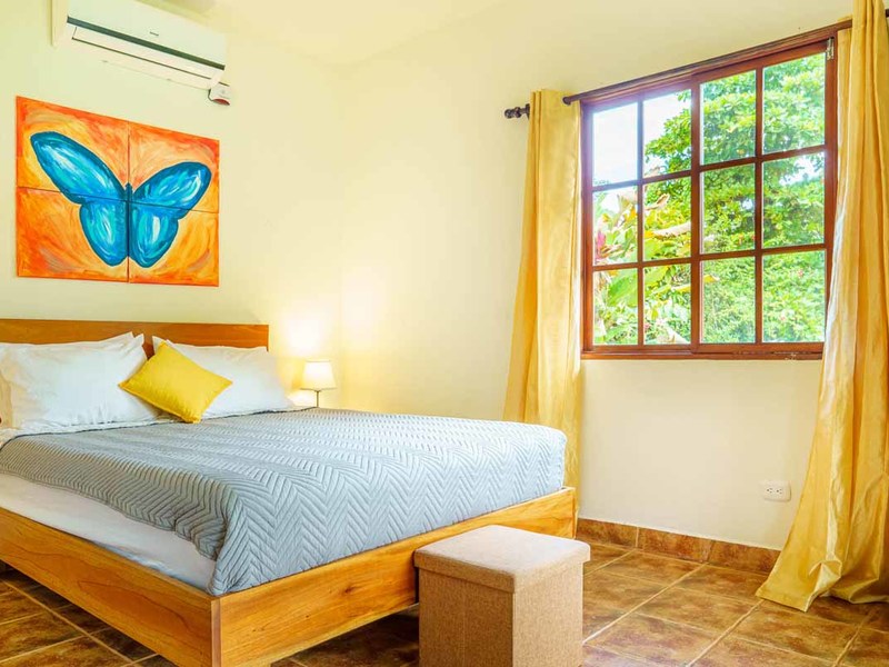 Enter the main villa, a spacious one-bedroom retreat with an open-concept design, kitchenette, and modern bathroom. Natural light cascades through the villa's numerous windows, adding a bright and refreshing touch to its serene ambiance. Step out onto the large, private patio, and immerse yourself in the calming sounds of the surrounding nature. This villa is perfect for solo travelers, couples, or small families looking for a getaway.