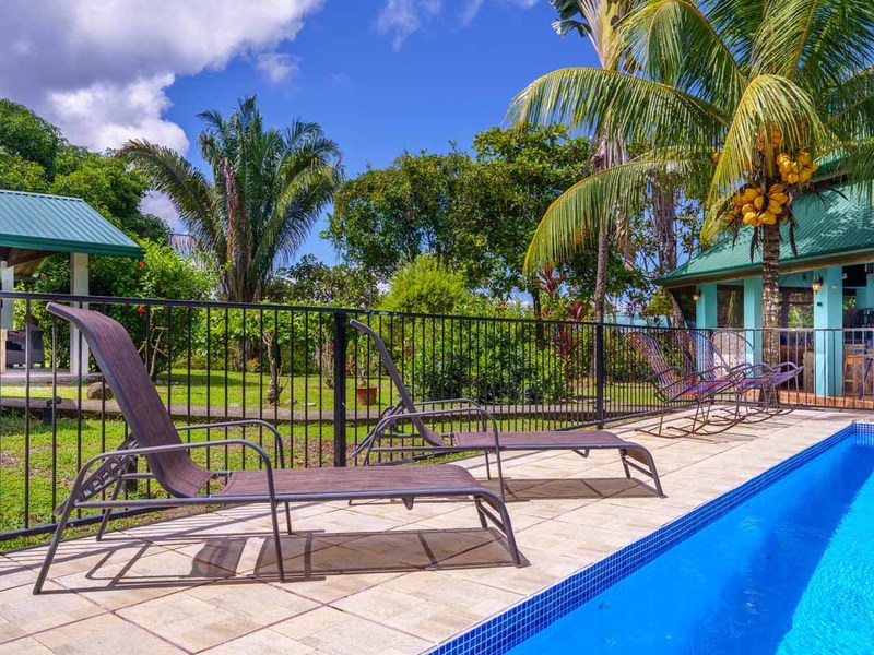Two additional charming one-bedroom villas provide the perfect retreat for guests or a rental income opportunity. Each villa offers a private bathroom and a fully-equipped kitchenette, ensuring guests have everything they need to enjoy their stay to the fullest. These villas are ideal for guests looking for privacy and comfort.