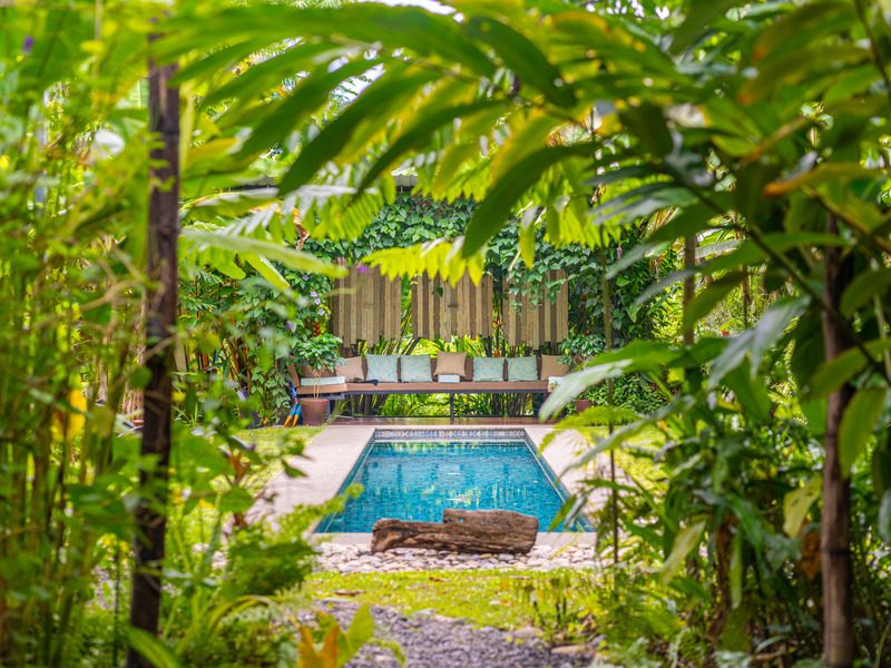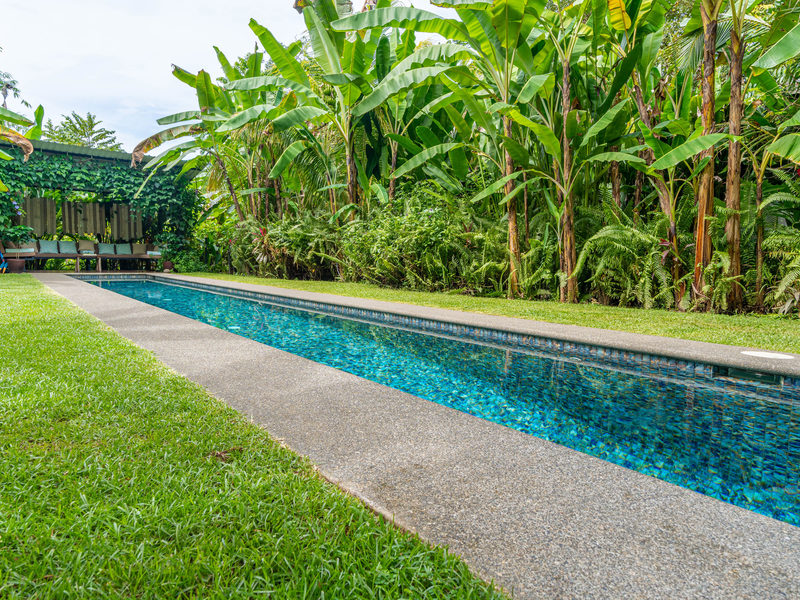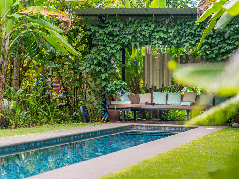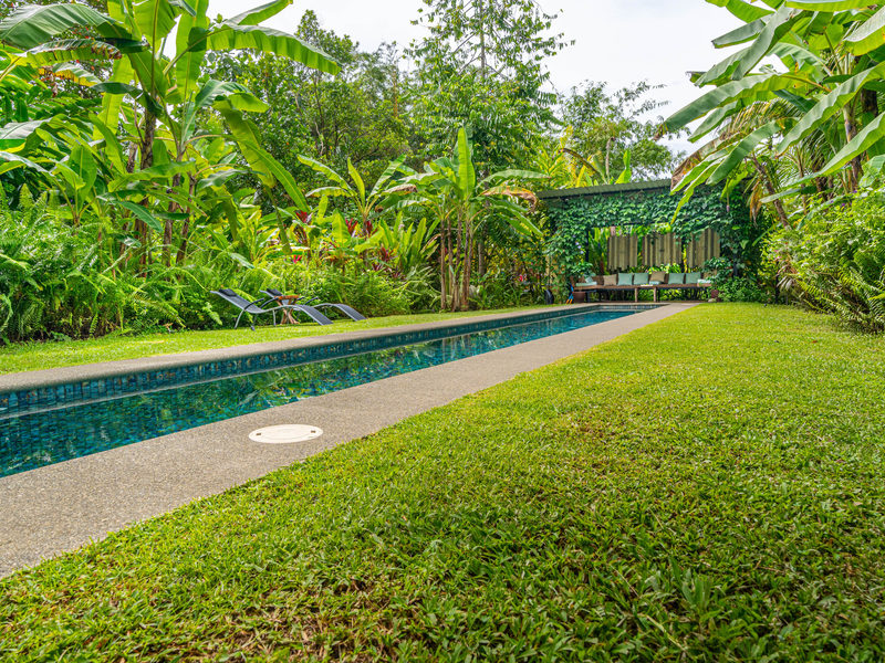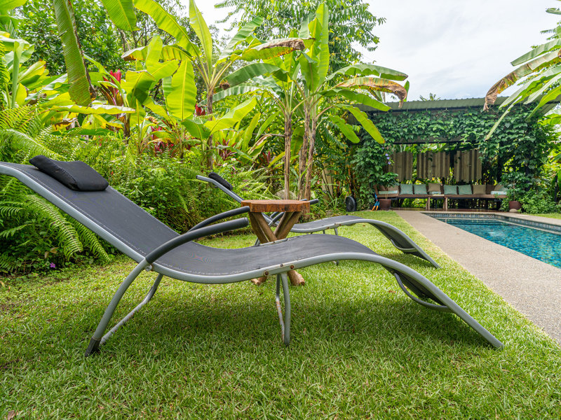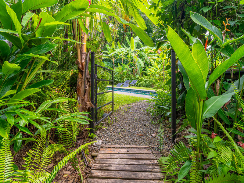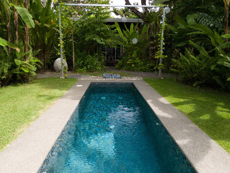Fruit trees dot the landscape, offering you a taste of Costa Rica's delicious bounty right at your doorstep. The heart of it all lies in the salt water lap pool, a stunning centerpiece where you can take a refreshing dip or simply soak up the sun.