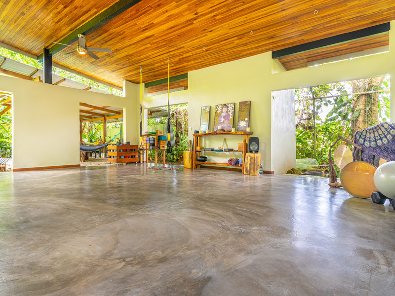 Additionally, there are three cozy cabinas also come equipped with kitchens and private bathing, that provide a perfect retreat for guests or potential rental income. And let's not forget the Yoga Shala, a versatile space that can easily be transformed into a third residence or used for various activities. The Yoga Shala, has attached to it a large group dining area, kitchen. and private bathroom.