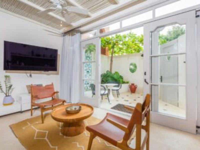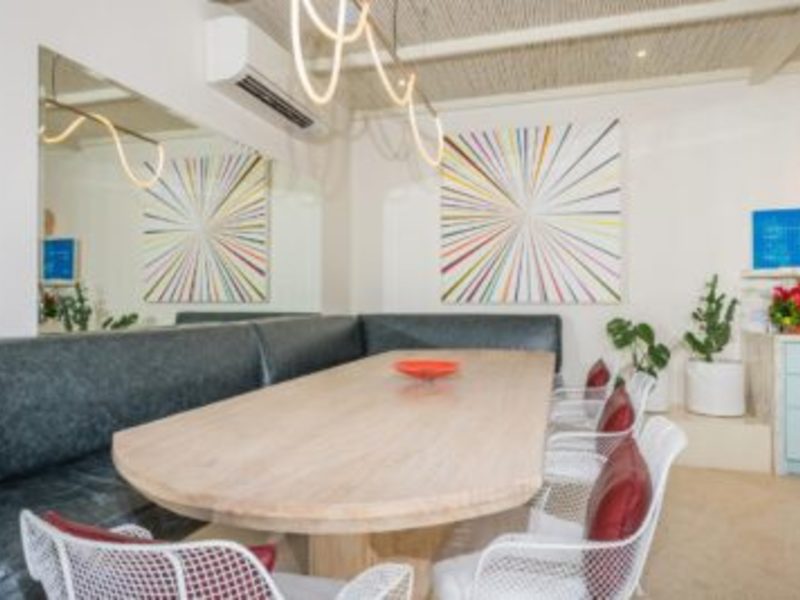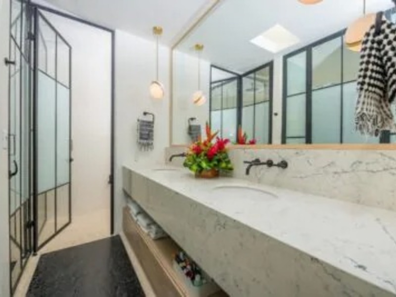 Spanning 5,000 feet Casa Alegria showcases a timeless and elegant design influenced by Grecian and Italian styles. The integrated built-in furniture throughout the house not only eliminates clutter but also adds a touch of sophistication, to each room.