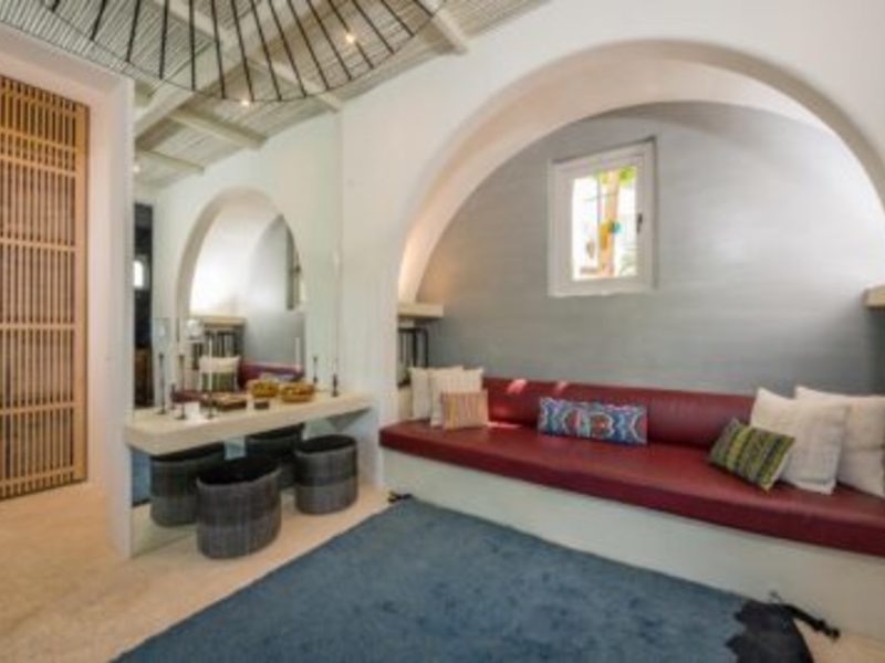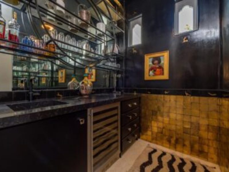The living room is a sanctuary of comfort featuring carpets and an elegantly arched sitting area that offers captivating views. Adjacent to the living room is a bar adorned with tiles from Belgium and Paris adding a touch of European charm to your evenings spent in relaxation.