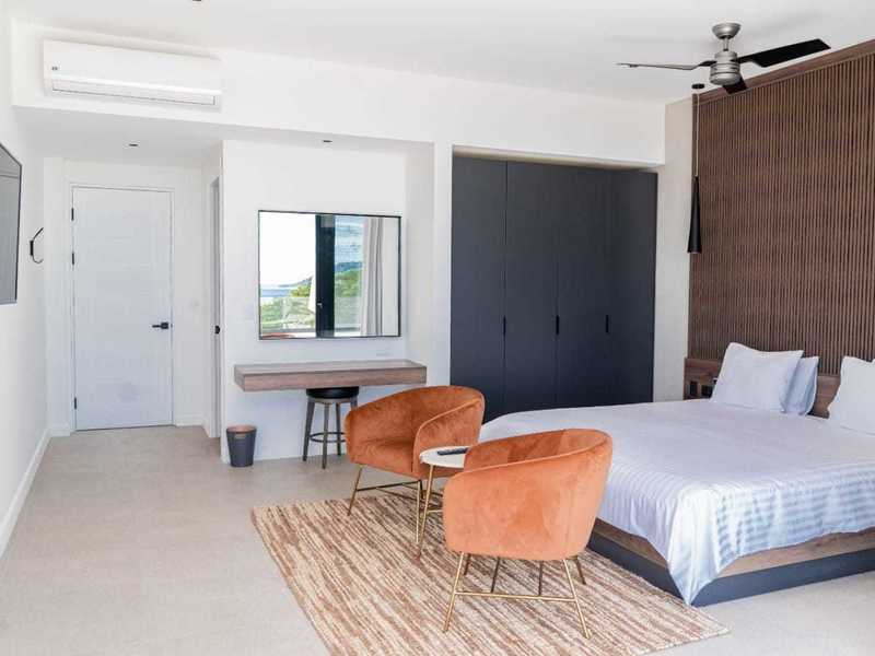 Featuring five main bedrooms, each with panoramic ocean views and ensuite bathrooms, this expansive home offers abundant space for relaxation and entertainment. Thoughtfully designed and furnished, each bedroom functions as a master suite, providing comfort and tranquillity. One of the suites boasts a spacious terrace, creating a private oasis, while the downstairs bedroom is versatile, serving as a home gym, office, or a fifth bedroom.