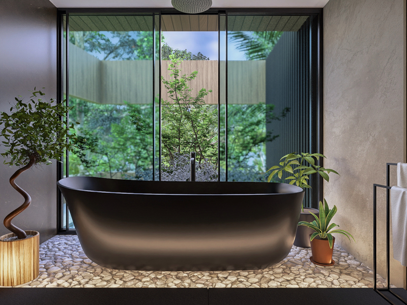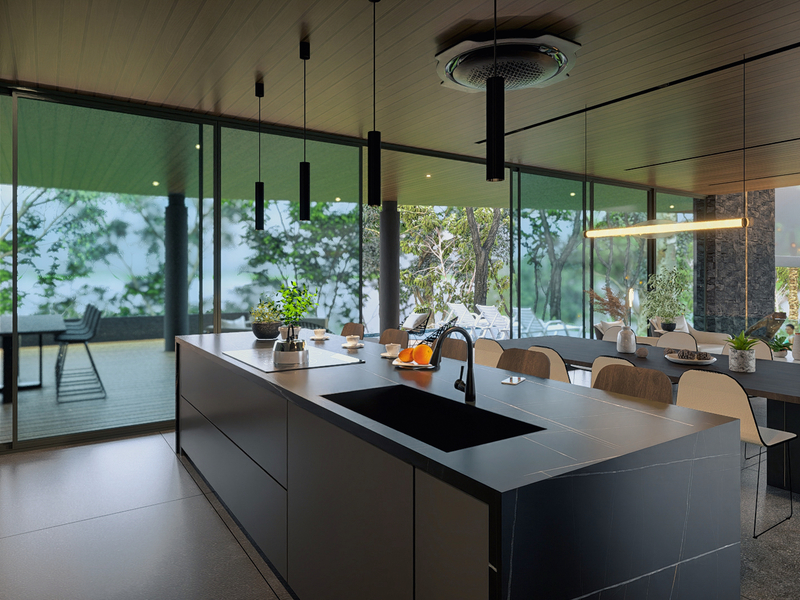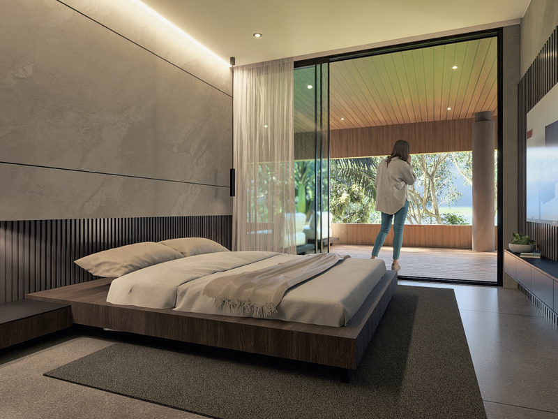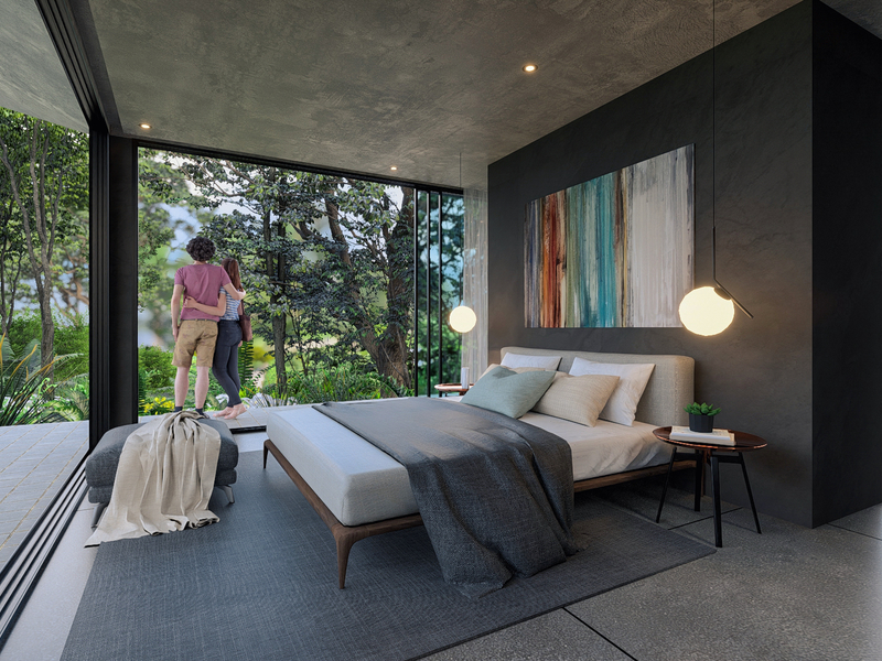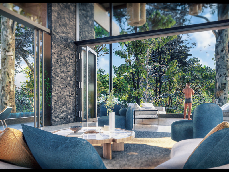 Designed in the NeoTropical modern style by architect Eric Bogantes of ALIANZ, Villa Corazon de la Selva seamlessly blends concrete and glass to create a harmonious living space that celebrates the natural beauty of its environment. The expansive floor-to-ceiling windows invite the outside in, flooding the interiors with natural light and refreshing breezes.