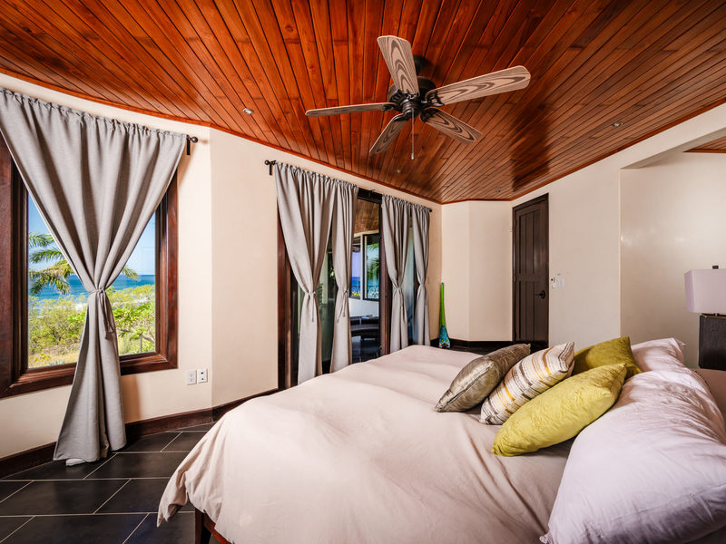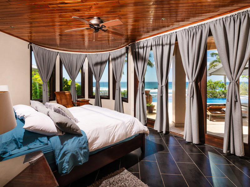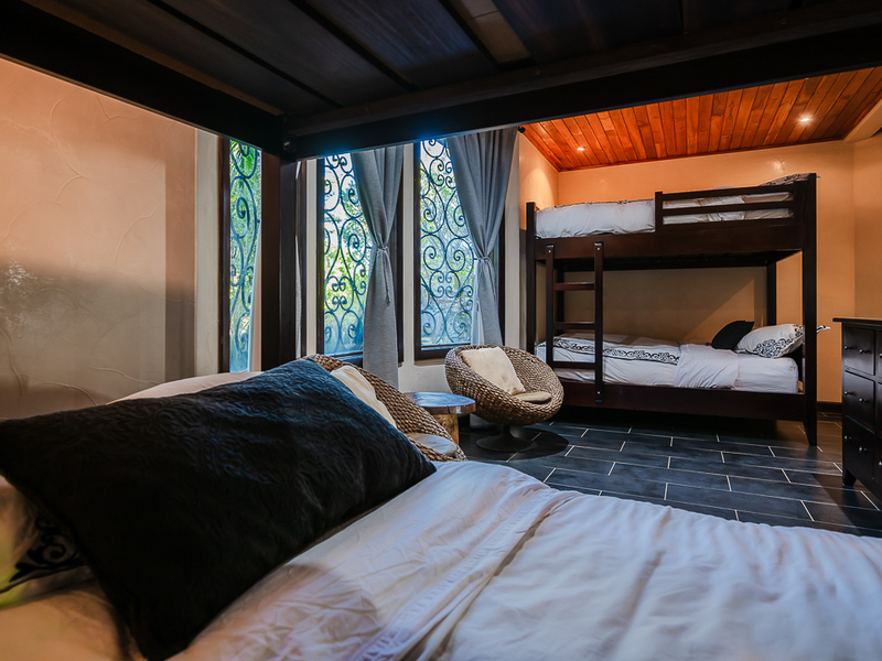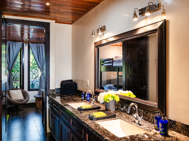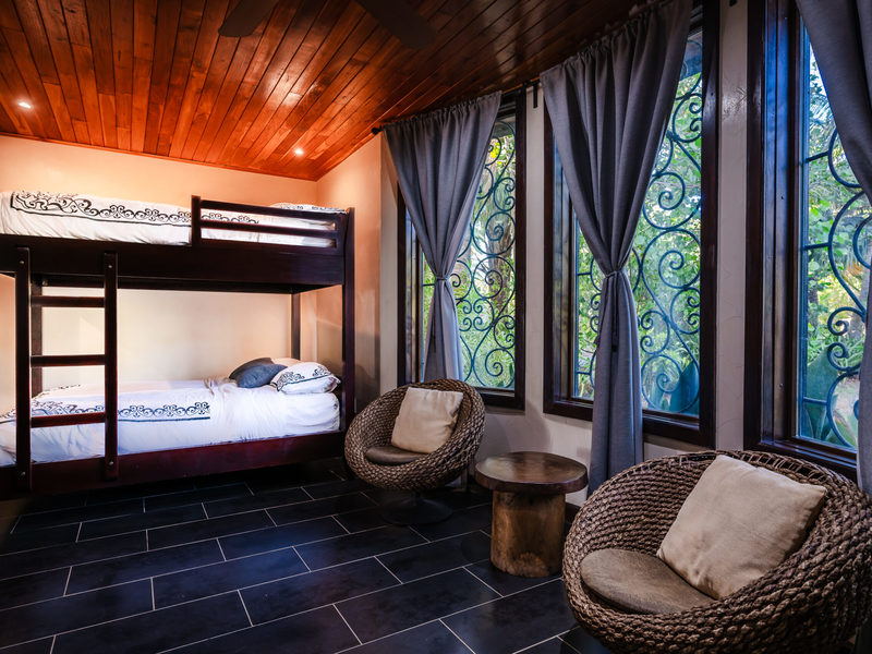 The social heart of the home resides on the second floor, featuring a spacious area for gatherings and a kitchen that opens up to stunning views, ensuring every meal is accompanied by the picturesque backdrop of Playa Negra. The circular dining room for 12, adorned with soaring 30-foot ceilings and ocean-view windows, sets the stage for memorable gatherings. Additional dining tables outside and inside, along with a Guanacaste table with benches on the ground level, offer plenty of space to entertain large groups. The first floor houses two generously sized ocean-view bedrooms and an outdoor terrace, perfect for embracing coastal living. The second floor offers one ocean-view bedroom with an ensuite bathroom. Ascend to the third floor to find the master suite, a sanctuary designed with privacy and luxury in mind, offering unparalleled ocean vistas. The fifth bedroom, with jungle views, is a kid’s haven with bunk beds sleeping 8 guests.