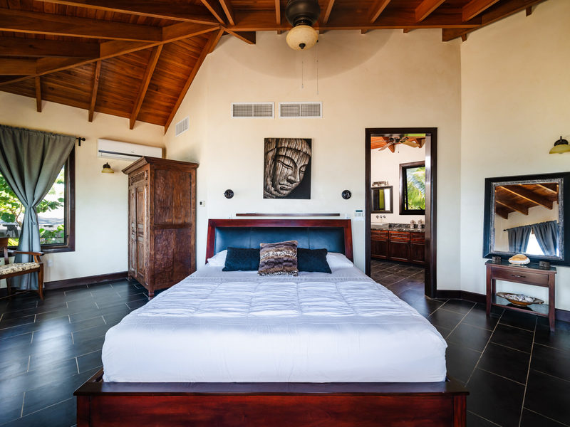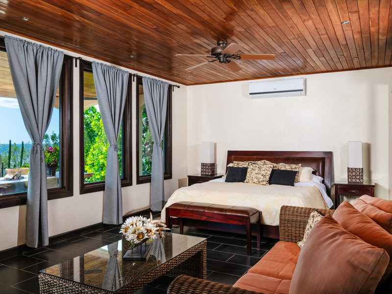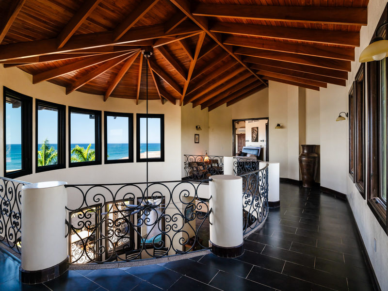 This villa blends Spanish colonial architecture with modern comforts, offering a harmonious fusion of old-world charm and contemporary luxury. Adorned with a captivating lava rock turret and a graceful circular staircase, showcasing exquisite slabs of Guanacaste wood and elegant iron railings, this property exudes sophistication and style at every turn.