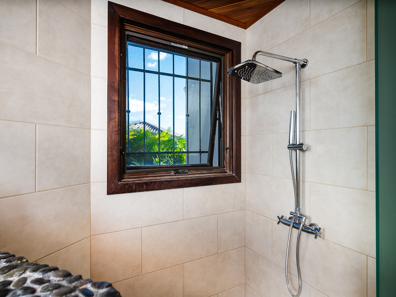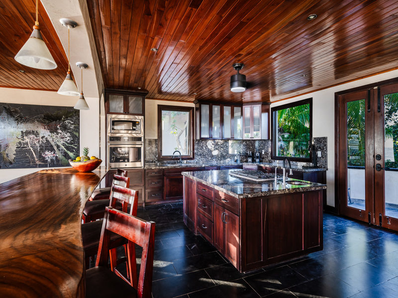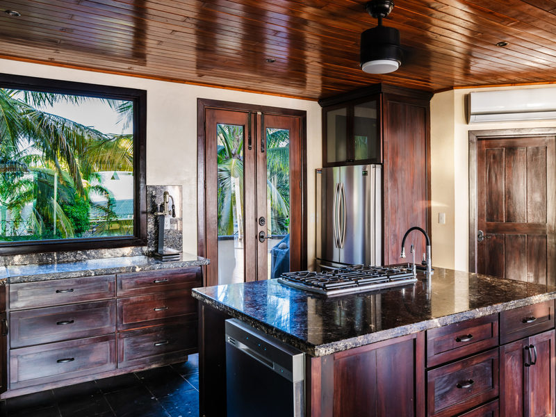 Upon entering through the solid wood entry doors, you're greeted by breathtaking ocean views, setting the stage for a truly serene living experience. The interior features teak ceilings and local hardwood tables that add warmth and elegance, complemented by gorgeous granite countertops in the kitchen paired with solid wood cabinetry, creating a haven for culinary enthusiasts.