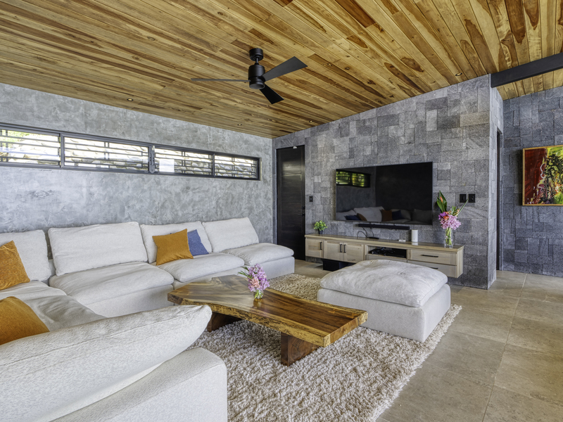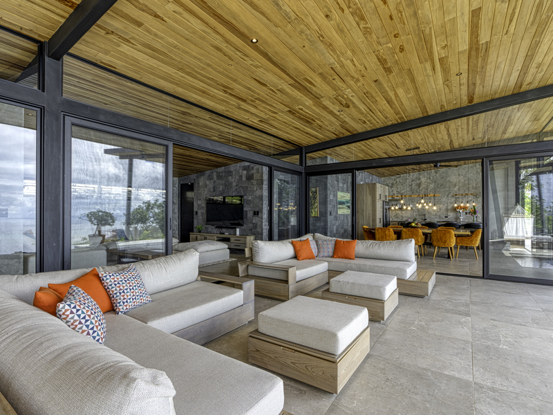 Step, inside the living area of Hermosa Retreat, an epitome of elegance where every detail speaks of luxury. The seamless integration of outdoor spaces leads you to a terrace. Picture yourself relaxing on sofas feeling the breeze or swaying gently in a hammock.